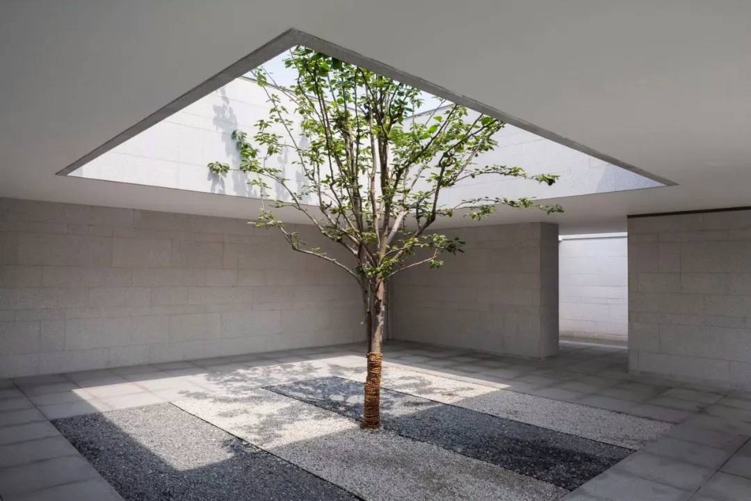 側(cè)經(jīng)又一方開(kāi)闊天井。早櫻盛開(kāi)時(shí)像含雨的云。