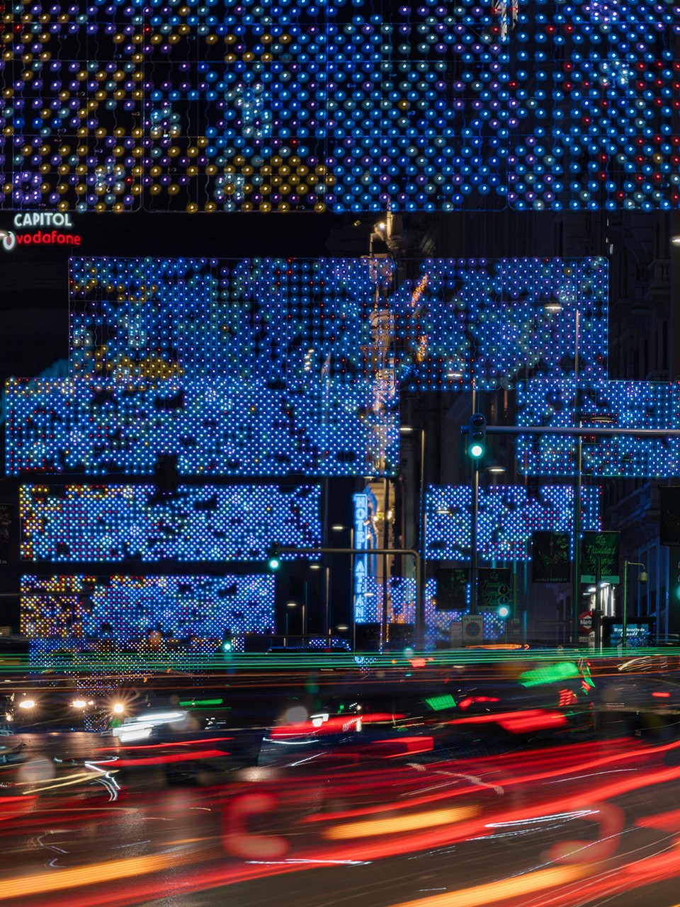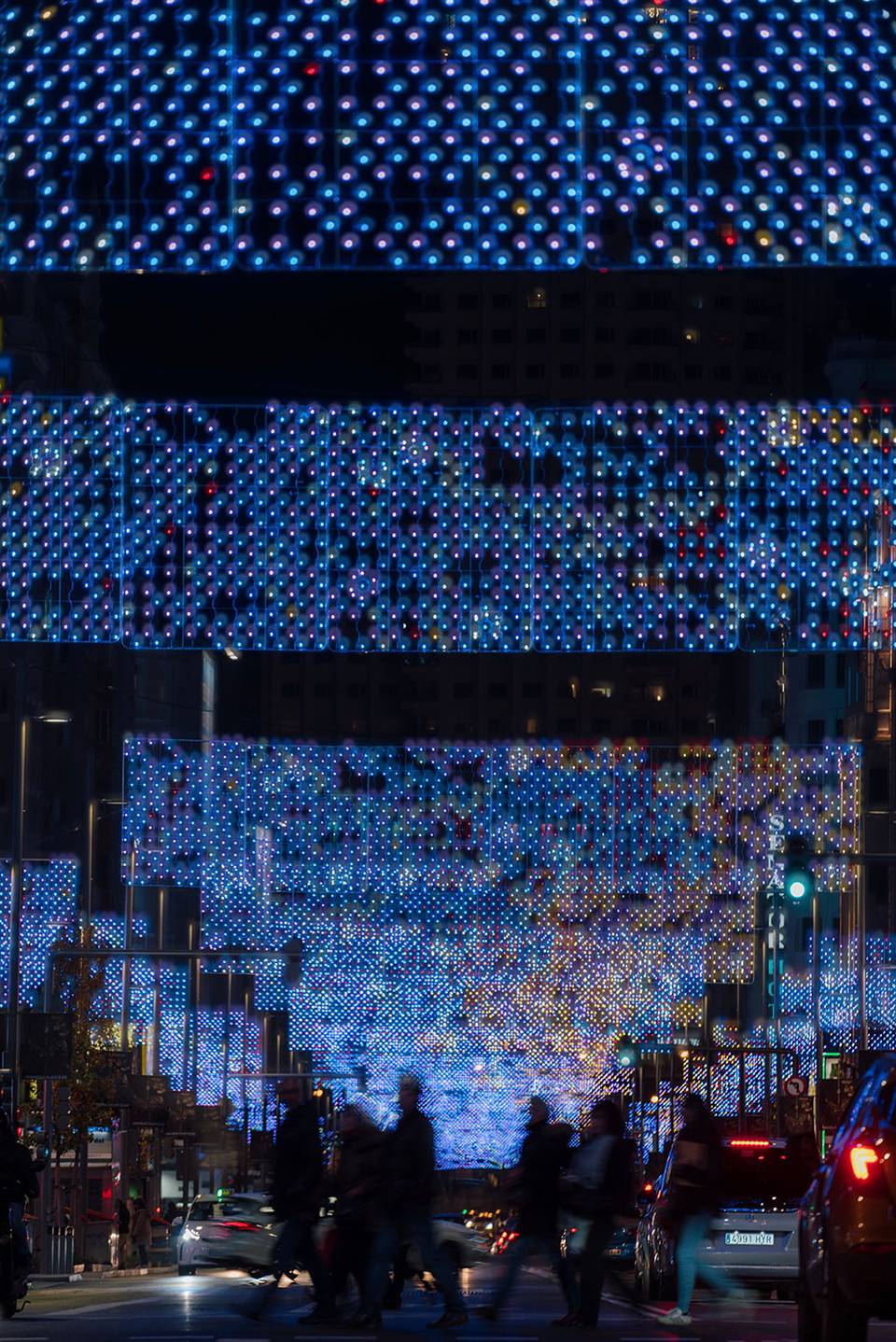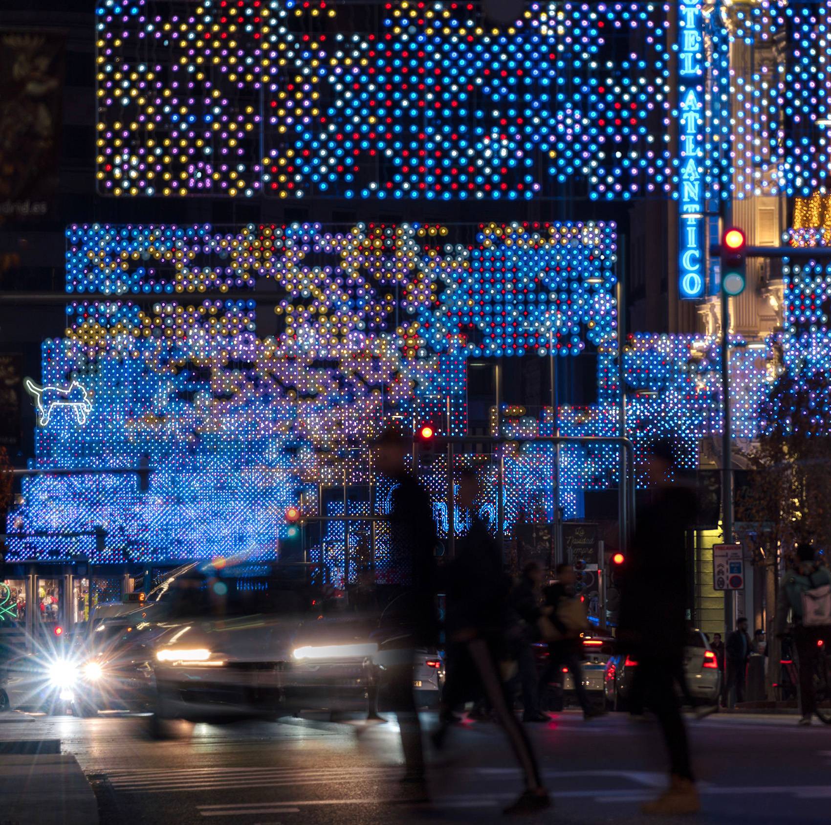 《天空中的露西亞》是Brut Deluxe受馬德里政府委托而特別設(shè)計的燈光裝置,旨在慶祝Gran Via商業(yè)街翻新工程的結(jié)束以及標(biāo)志性道路的開放。