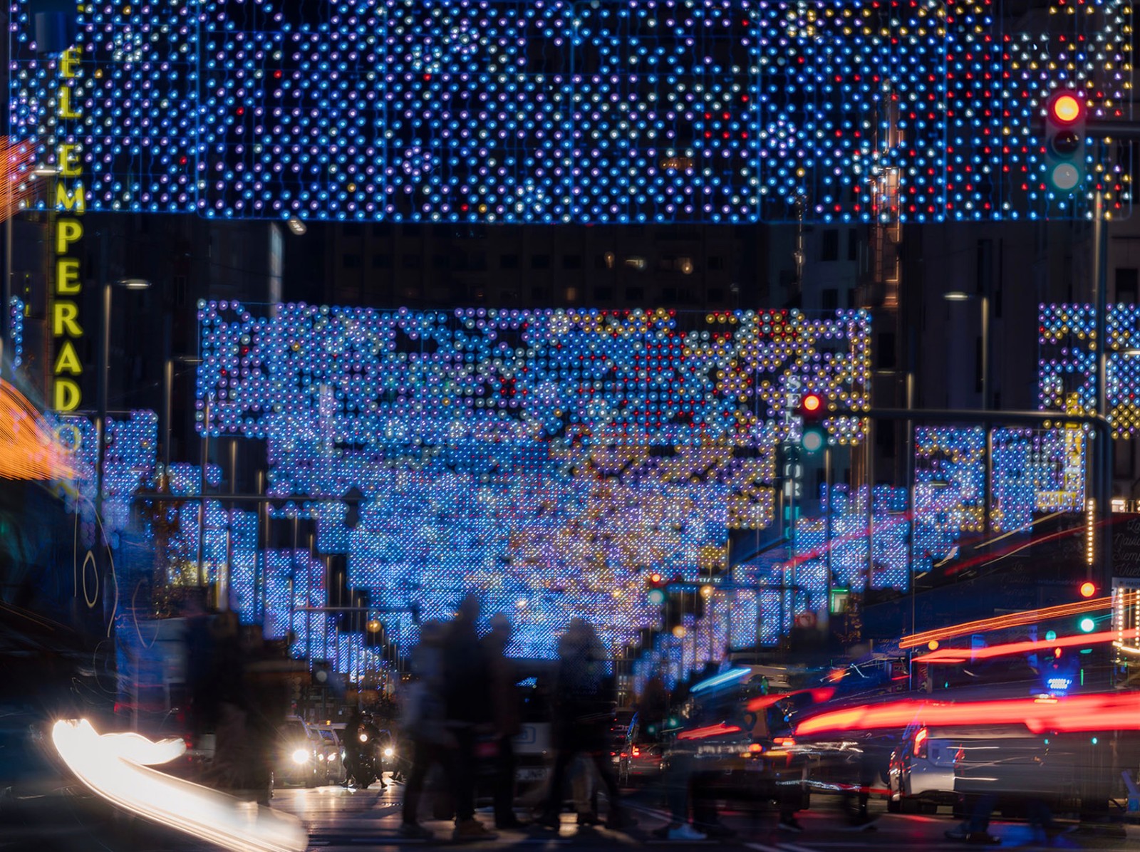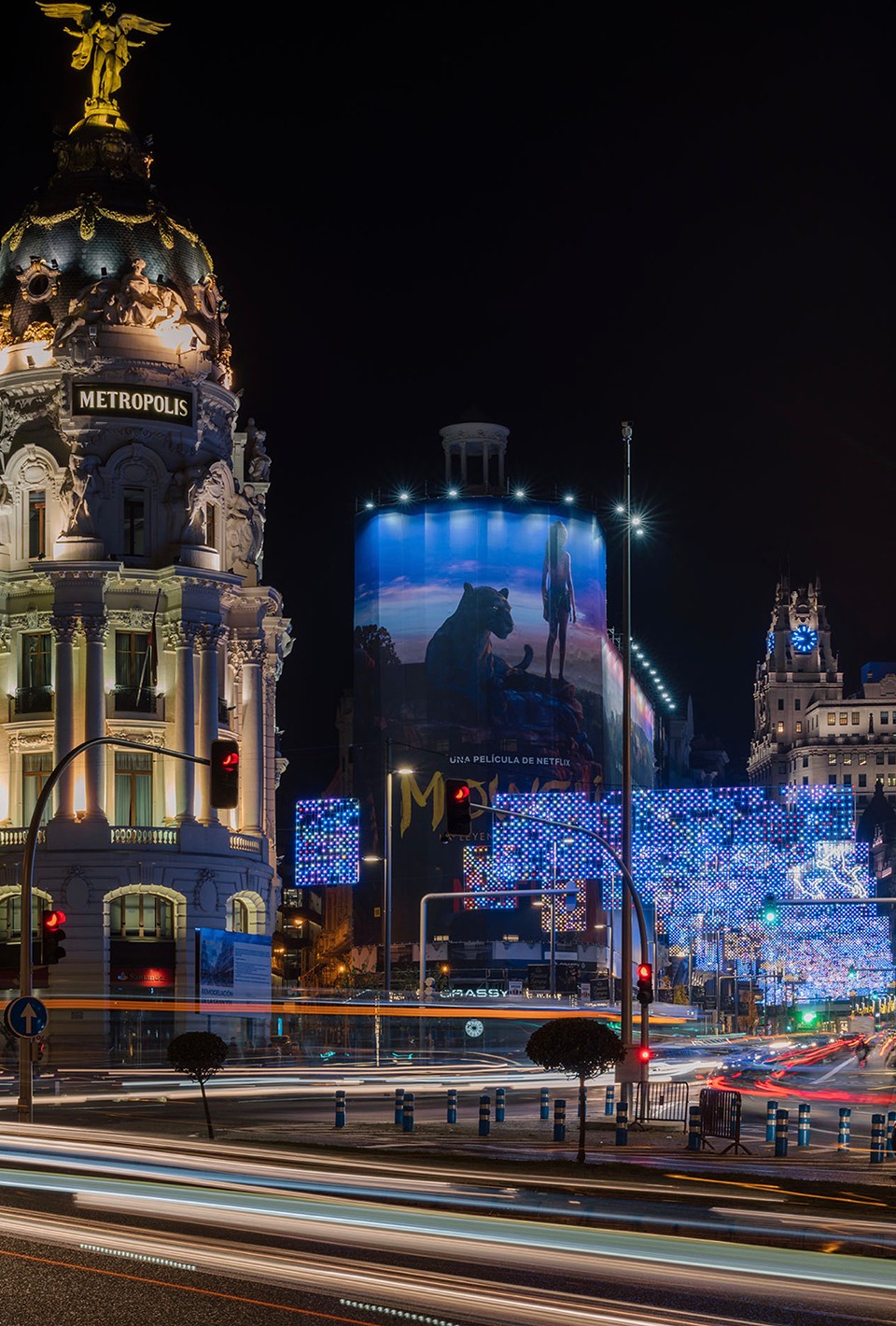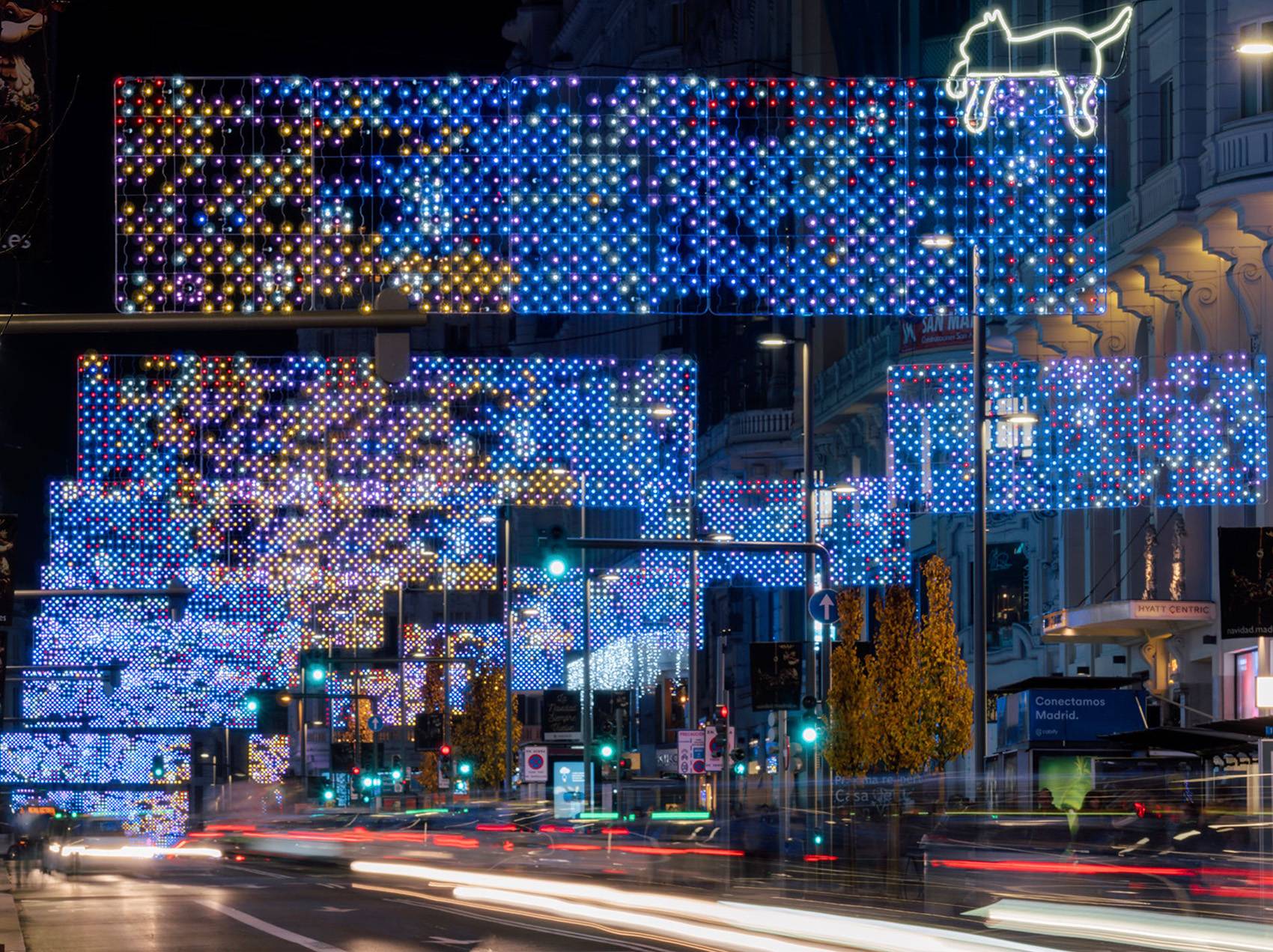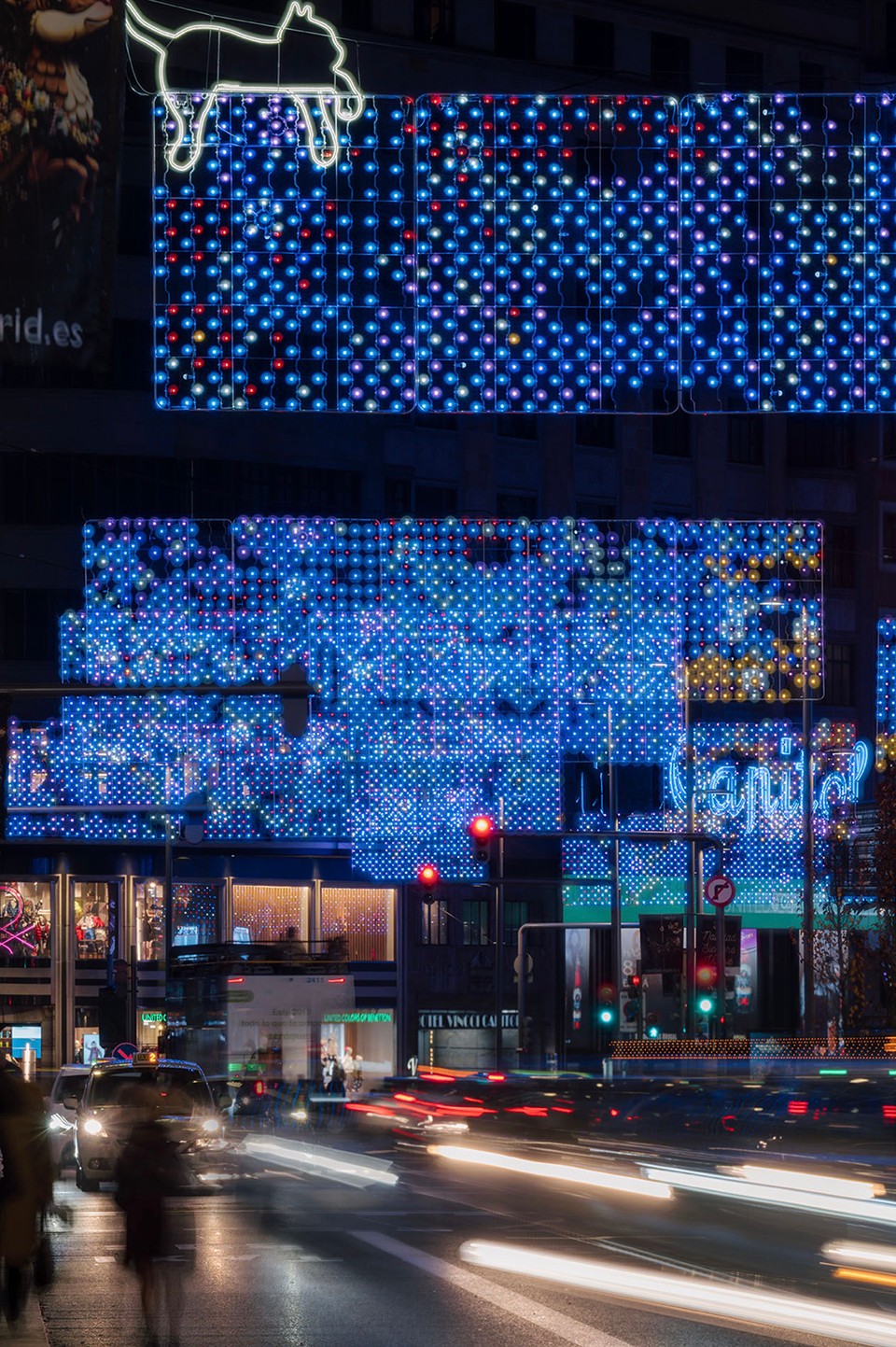 《天空中的露西亞》是Brut Deluxe受馬德里政府委托而特別設(shè)計的燈光裝置,旨在慶祝Gran Via商業(yè)街翻新工程的結(jié)束以及標(biāo)志性道路的開放。