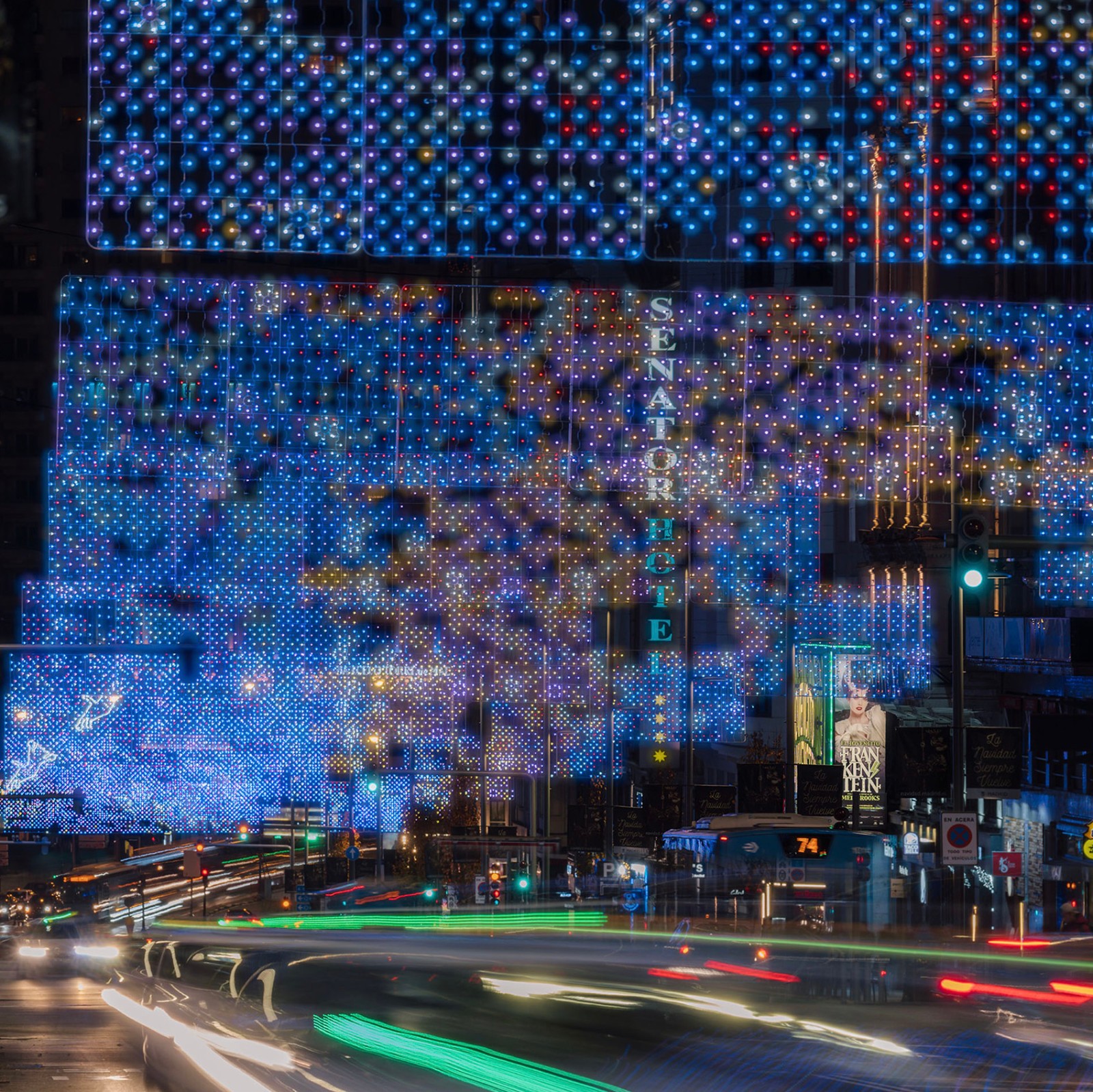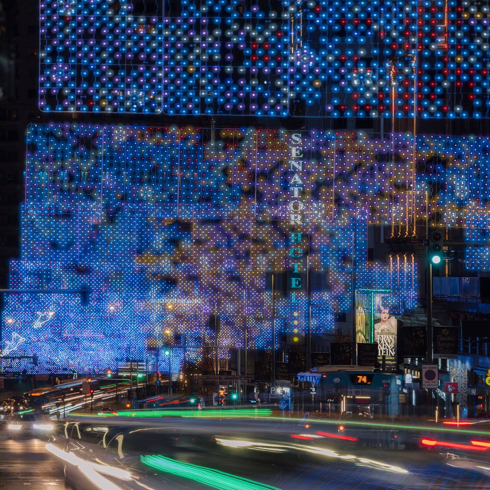 該裝置覆蓋了1300米的街道空間,一共使用了360414個LED燈泡,裝機容量為31千瓦。