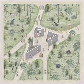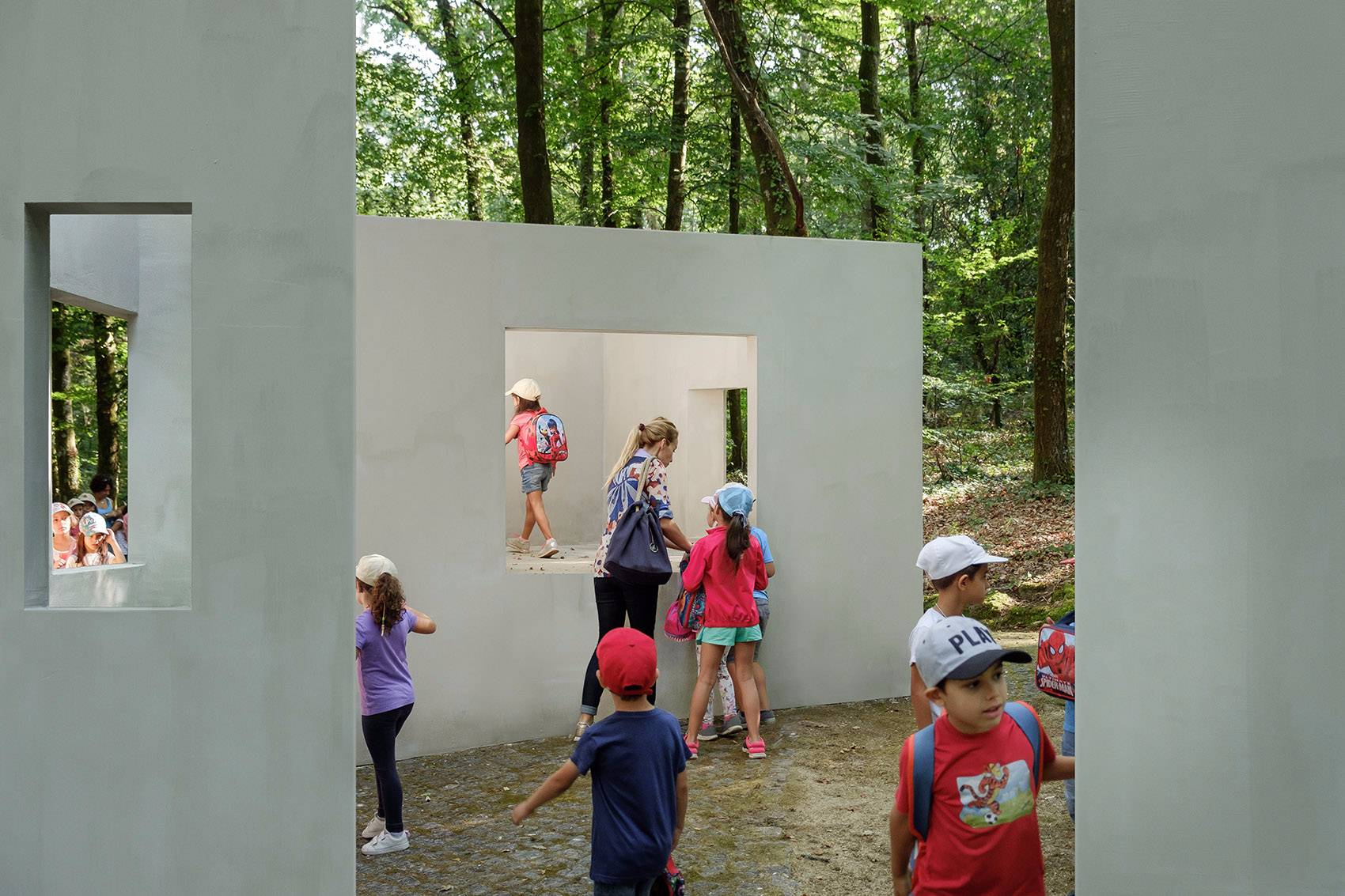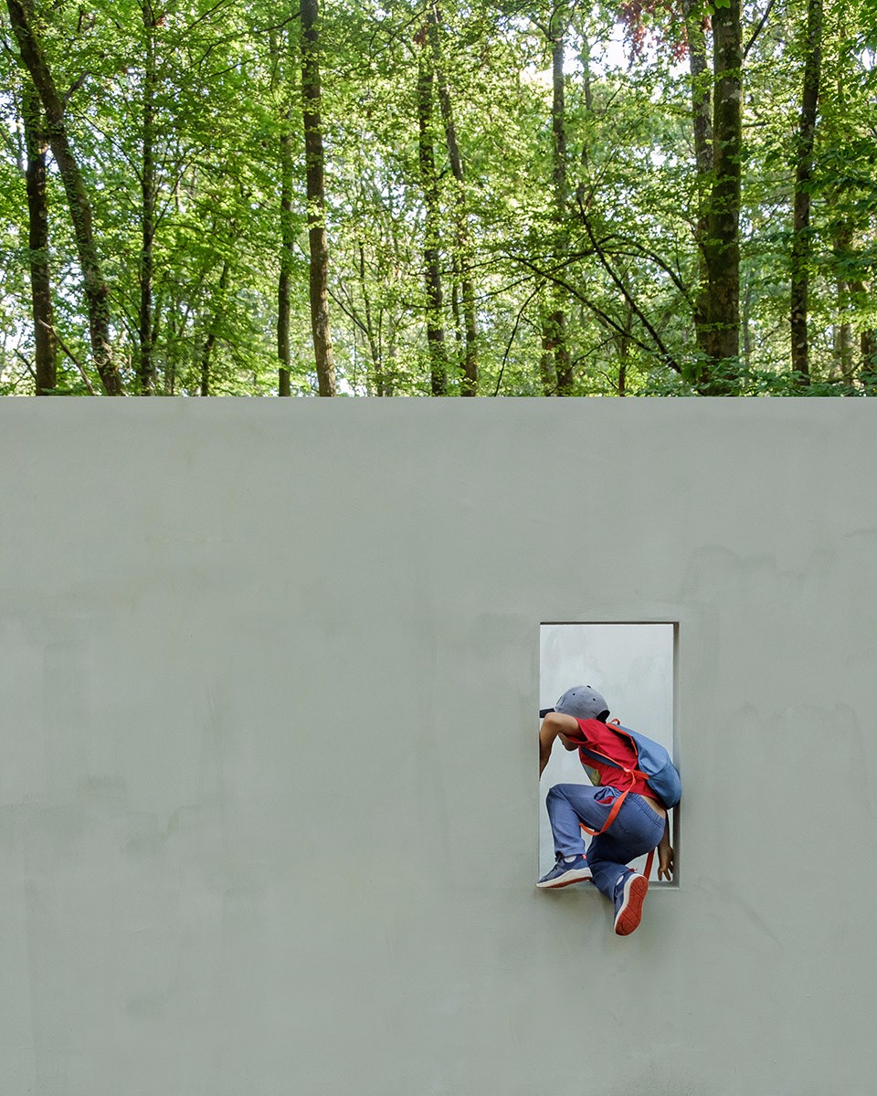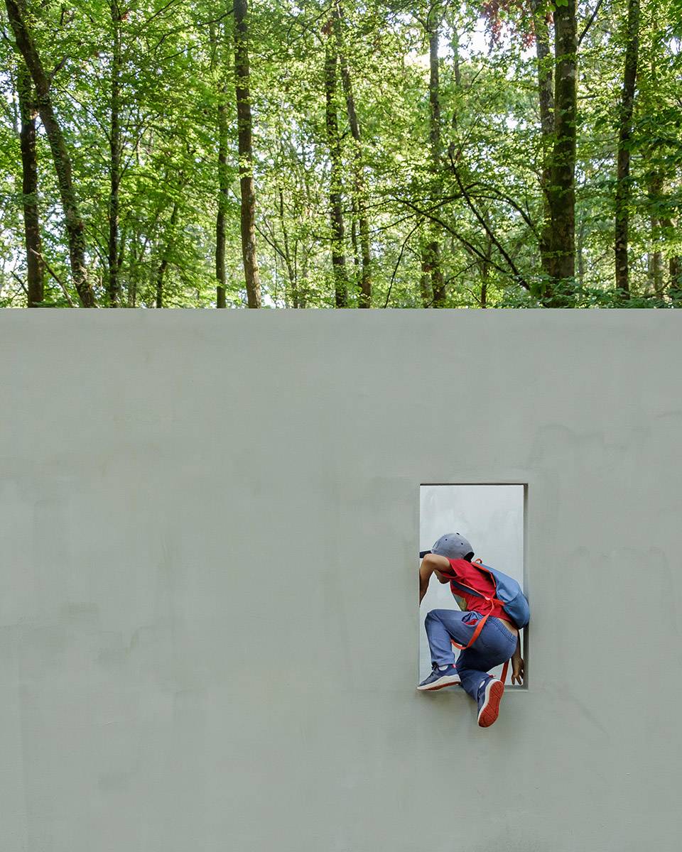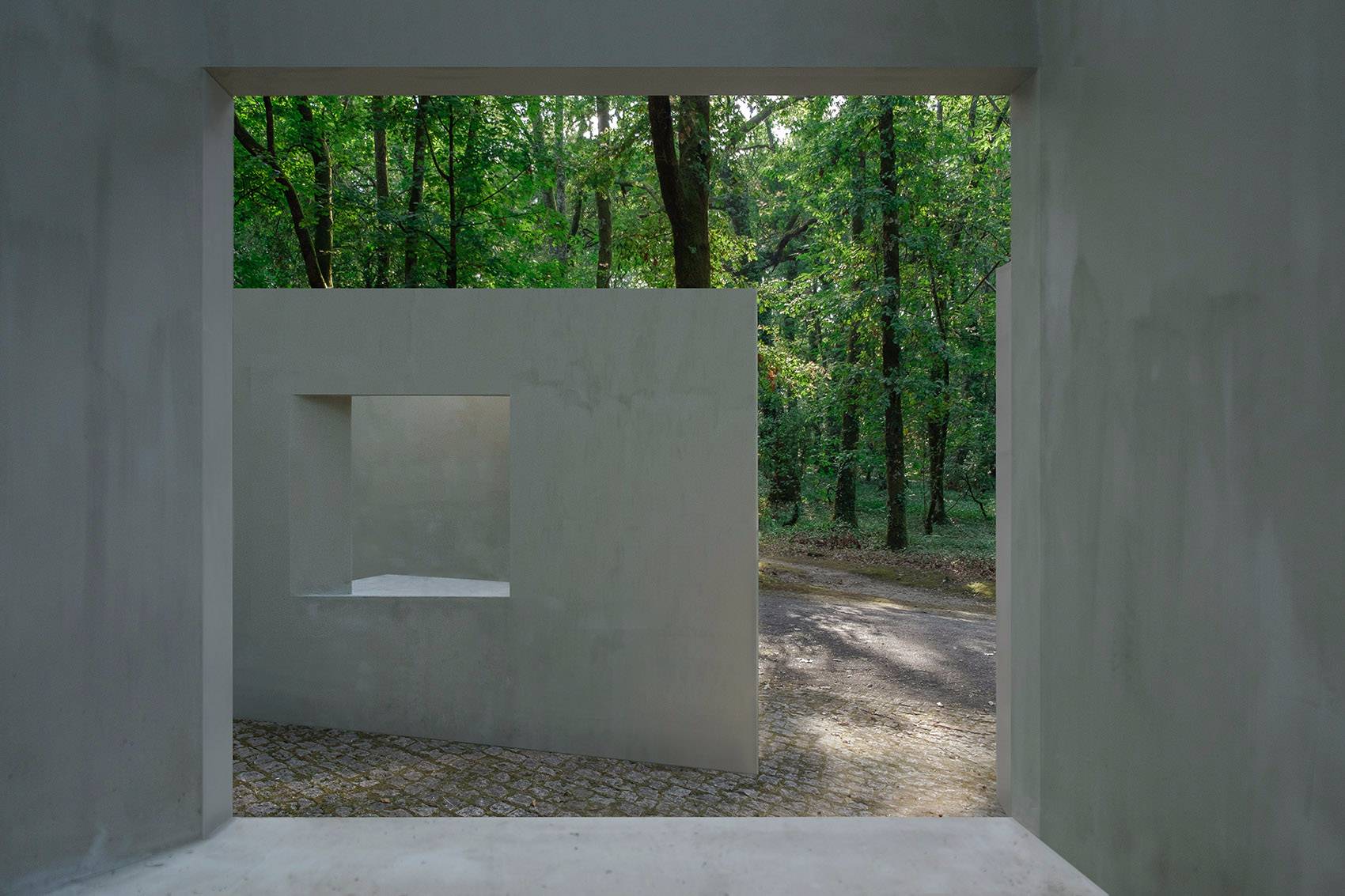 受當(dāng)?shù)匚乃噺?fù)興畫家Grao Vasco將背景框選折疊成集中前景的繪畫技術(shù)啟發(fā),項(xiàng)目?jī)?nèi)采用了一系列框架式的開洞來重構(gòu)周邊景色。在這個(gè)設(shè)計(jì)作品中,前景與后景像靜態(tài)畫作一樣被折疊框選起來,但其中的觀眾和表演者仍在走動(dòng)。
