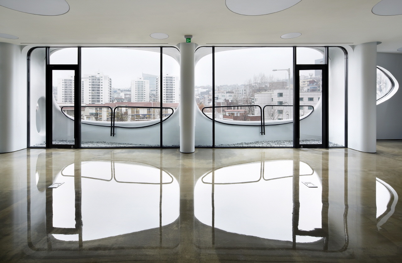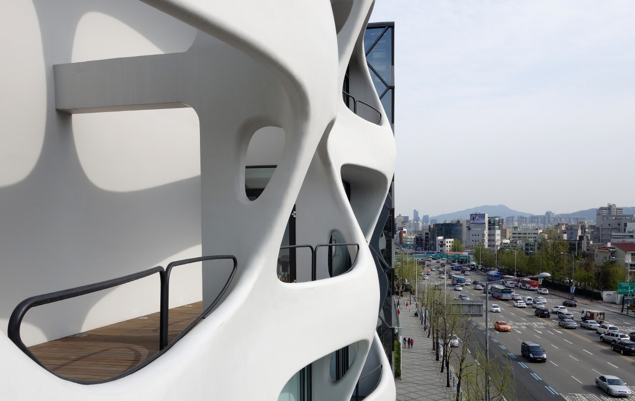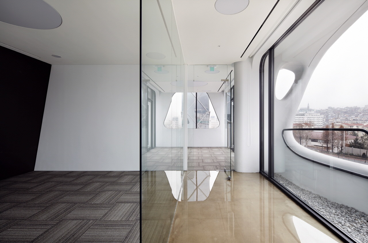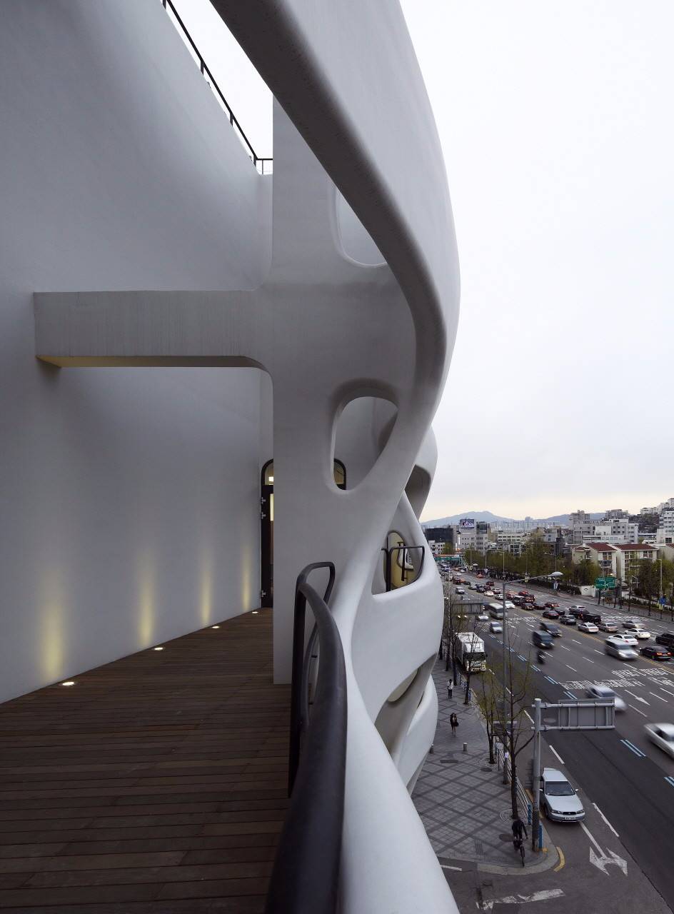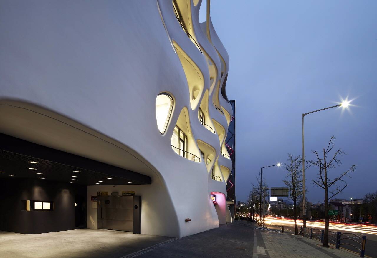 該建筑位于漢南大道104號,比鄰2號隧道口與漢南橋的黃金位置。作為交通擁堵最多的街道之一,設(shè)計師確定了該場地的設(shè)計特征。盡管該項目是一個小型建筑,但城市景觀的定義方向是一個需要解決的問題,它由此成為了該計劃的起點。