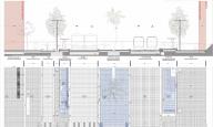 將植被引入這個水平礦產(chǎn)基地。沿著人行道高大的樹木,中央的綠色保留區(qū)域、側(cè)壁上的攀援植物、最遠(yuǎn)處的小公園……新近種植的所有植物將形成保護(hù)人流的織錦,與它賴以生存的礦物基地產(chǎn)生一種辯證關(guān)系。