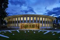 圓形結構的新法國駐海地大使館位于一個大公園內。項目營造了一個優(yōu)雅的園區(qū)環(huán)境,既是法國共和國形象的代表也是日常工作的空間。新大使館的設計靈感來源于幾個時代的熱帶建筑,以此來紀念建筑所在的土地。使館使用輕鋼和木結構,立面可以過濾視線并且保護建筑免受氣候影響。