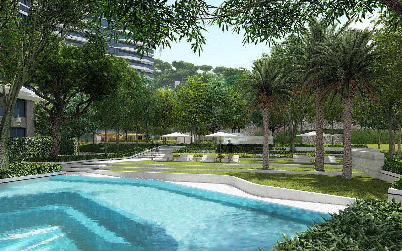 中山樾璽項目景觀設(shè)計根據(jù)項目地勢特點依山而建,利用原地形高差,讓客戶擁有頂級的景觀視野,并為客戶打造頂端雅居的奢華居住體驗。同時,景觀試圖保持項目原地塊的綠色生態(tài)特色,在打造奢華項目的同時注重生態(tài)環(huán)保的新生活體驗。
