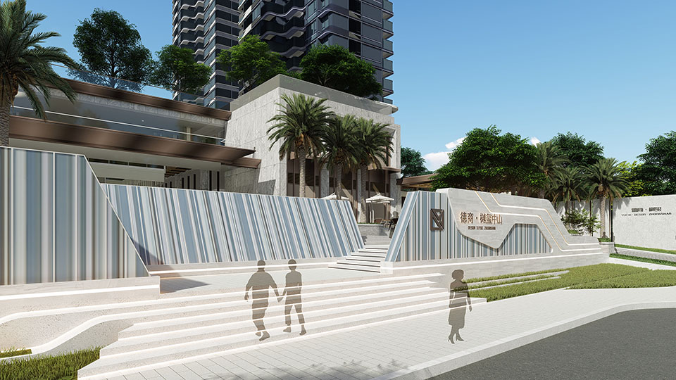 精致典雅的居住區(qū)入口:運用景觀設(shè)計的手法將外部空間與居住區(qū)空間形成視覺上的隔離,同時利用高差營造氣勢宏偉的入口景觀。從入口景觀空間的營造就讓客戶轉(zhuǎn)變心情,開始享受私密的品質(zhì)生活。