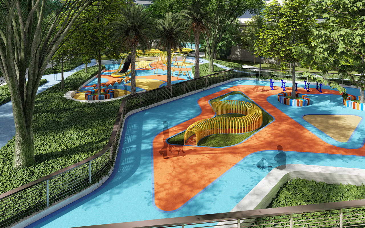 休閑樂園:為住戶兒童提供游樂活動空間,為保證兒童活動安全,首先我們設(shè)計單一流線,形成相對獨立和私密的空間,同時采用滿足安全要求的地墊和器械供兒童玩耍。結(jié)合綠化設(shè)計了家長看護區(qū)。為滿足高端人群的居住需求,設(shè)計了寵物花園,以為小區(qū)擁有寵物的人群提供遛寵物和訓練寵物的場所,提升小區(qū)的綜合檔次。