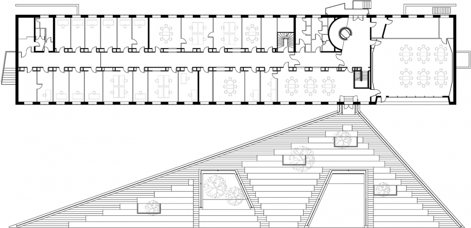 紅十字會志愿者之家為在丹麥的34000名志愿者提供了可持續(xù)促進(jìn)他們工作的環(huán)境。該建筑由COBE與志愿者合作設(shè)計(jì)完成,是對志愿者工作的贊揚(yáng)和承諾,也是志愿者、城市和任何希望向紅十字會為邊緣化市民所做工作做貢獻(xiàn)的人們的聚會場所。紅十字會志愿者之家是丹麥哥本哈根紅十字會國家總部的擴(kuò)建建筑。三角形的建筑有一個(gè)面積850㎡的屋頂,屋頂是一個(gè)從街道一直延伸到建筑的二層的巨大公共臺階。擴(kuò)建建筑占地面積為750㎡,部分位于地下,是總部和志愿者中心的主入口。紅十字會志愿者之家設(shè)計(jì)目標(biāo)是為3400名志愿者創(chuàng)造一個(gè)新的聚會場所和公共空間——一個(gè)可以回饋城市的都市會客廳。這個(gè)目標(biāo)現(xiàn)在已經(jīng)實(shí)現(xiàn)了。
