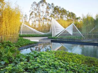 “山水間”位于南寧園博園西南角,占地面積約2000平方米,是一個(gè)富有山水畫意的花園。