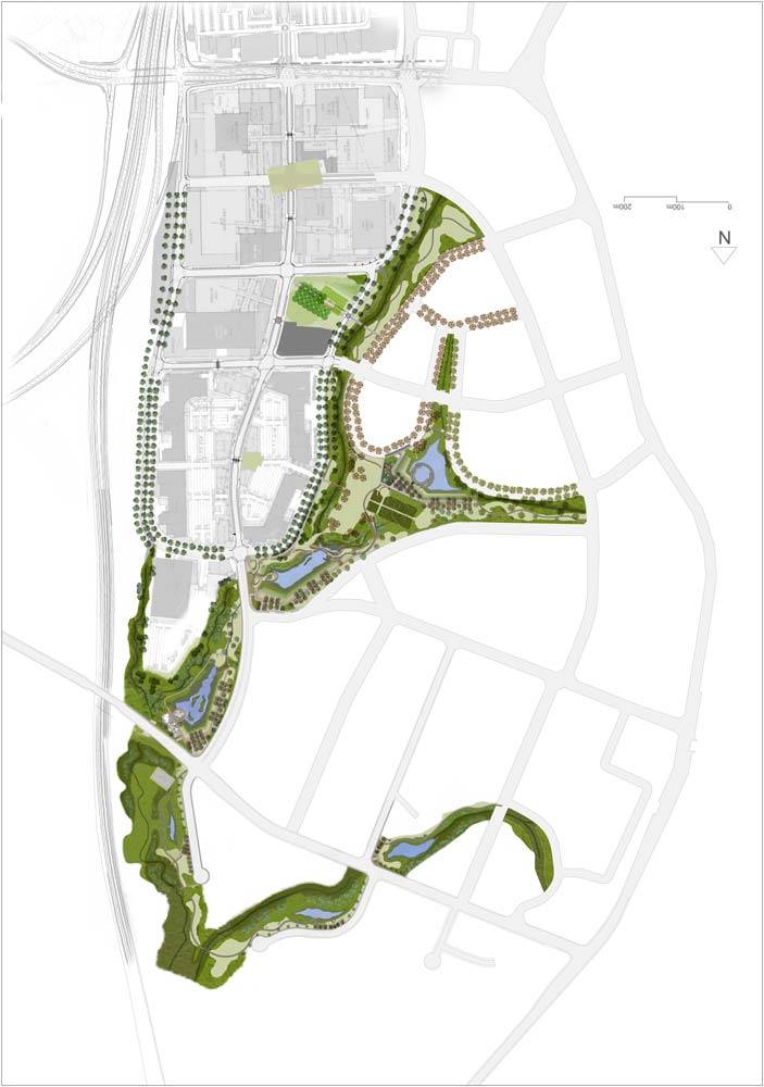 該公園設(shè)計(jì)的重點(diǎn)是編織歷史與重疊功能的概念,加上“貫穿、交織和聚集”的概念,通過(guò)結(jié)合該公園的支流與人工濕地,以實(shí)物形態(tài)表現(xiàn)出來(lái)。雖然Kopupaka公園為弱化和儲(chǔ)存一個(gè)新城鎮(zhèn)中心街道和建筑的雨水徑流提供基礎(chǔ)設(shè)施,但這種新型的市民基礎(chǔ)設(shè)施(傳統(tǒng)界限、約束條件和功能的重合)是文化、生物、社區(qū)和(不常見(jiàn)的)工程目標(biāo)的緊密重疊。