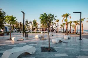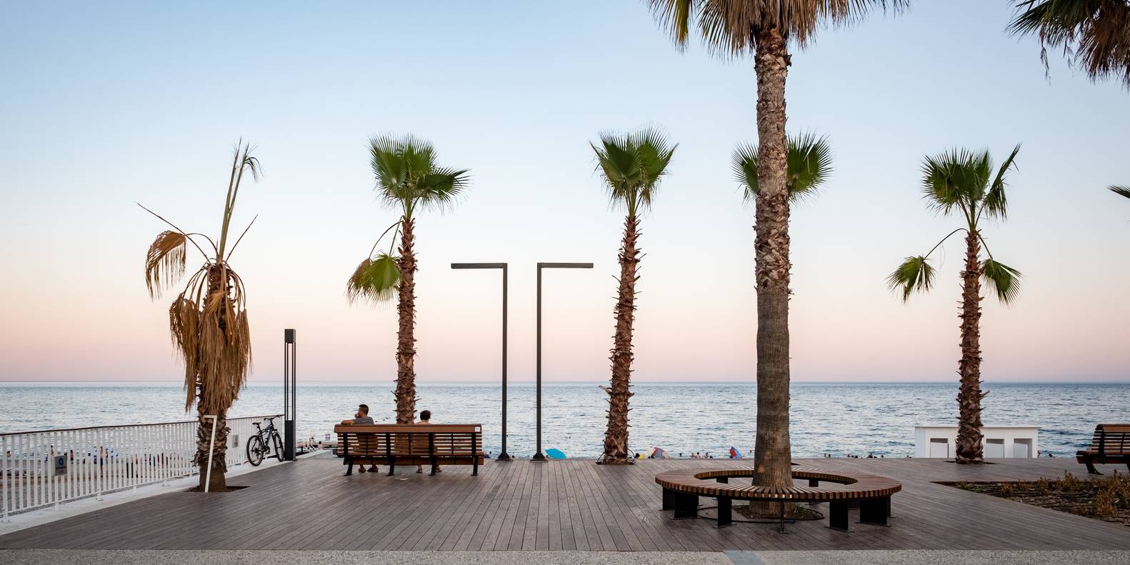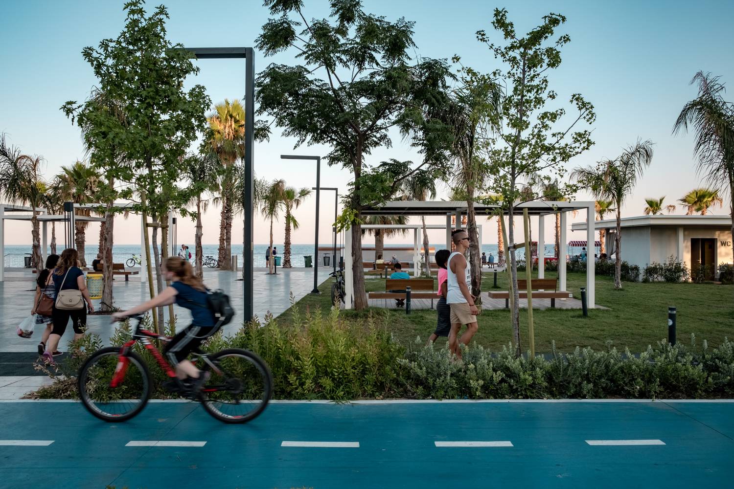 得益于重新設計的路網幾何和路面材料,交通得以緩解,地中海大道成為了一個更加行人友好的道路。另一方面,位于北部居住區(qū)之間的綠色通廊延伸到海邊,以海岸的一片綠園結束。