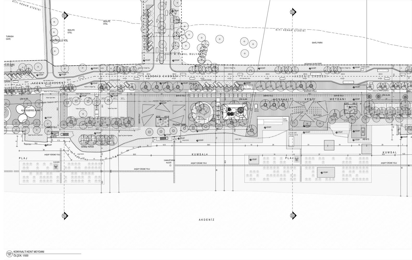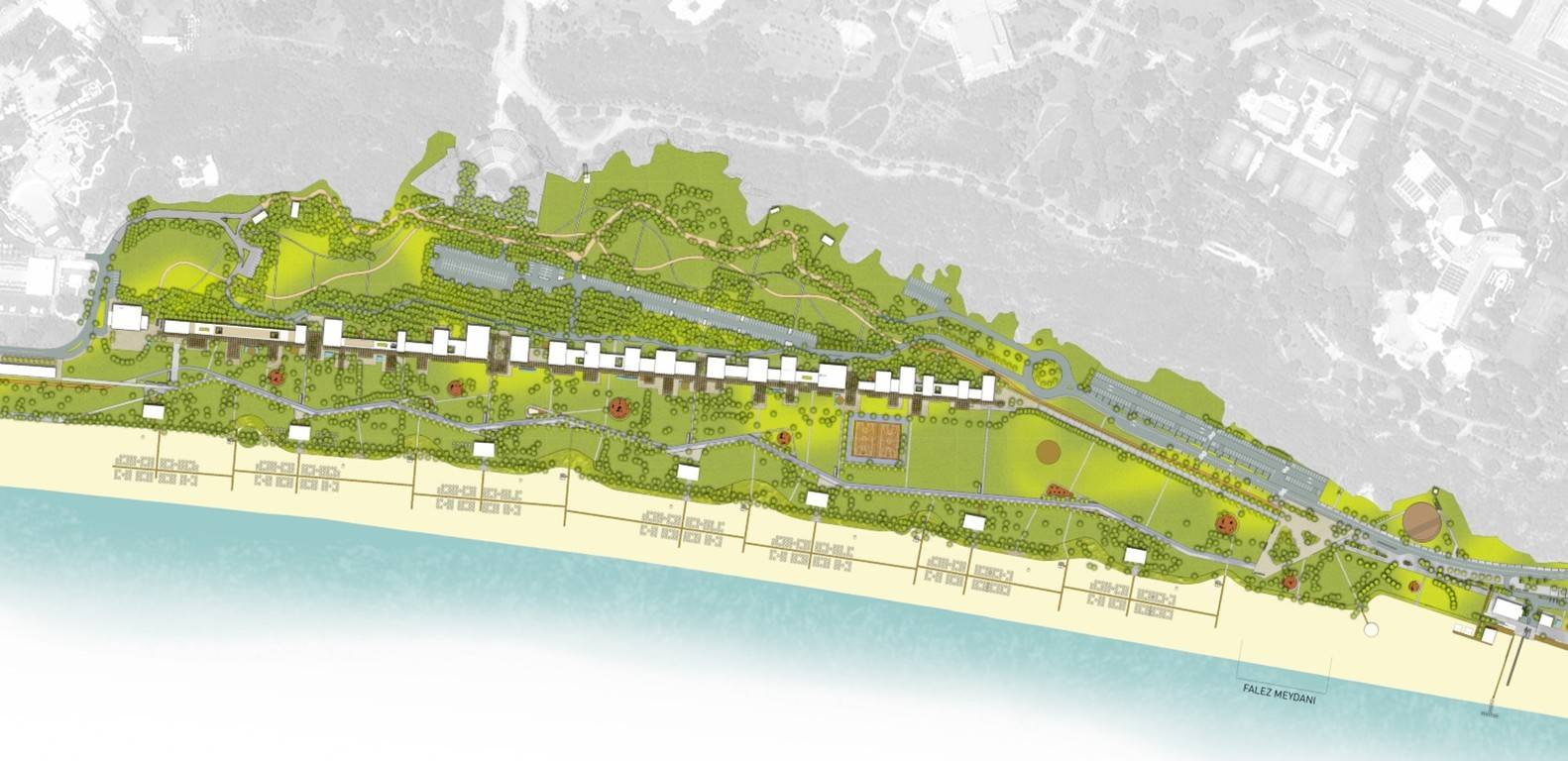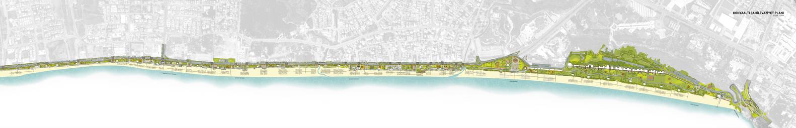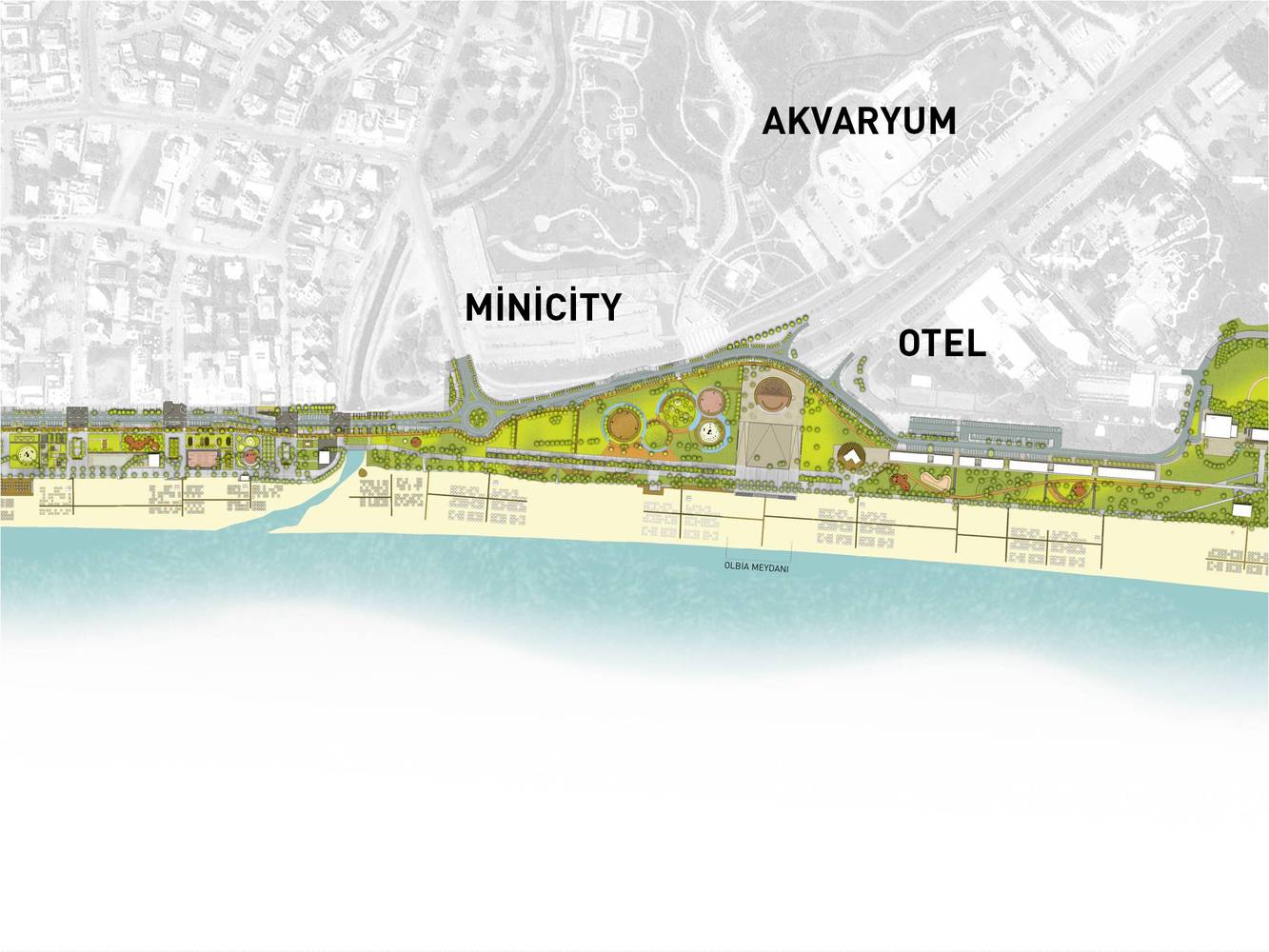 安塔利亞海岸線城市修復項目的一期大約覆蓋100公頃的面積,于2018年6月15日向公眾開房。這片區(qū)域曾為2014土耳其建筑競賽的改造對象,Ozer\Urger建筑事務所的方案贏得了該競賽,并經由與Tugay建筑事務所的合作而得到完善。地中海大道是安塔利亞海岸線城市修復項目第一個啟動的部分,還包括博物館廣場及其變體、海濱公園、奧爾比亞廣場,共同組成四個各具特色的部分。