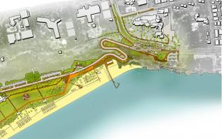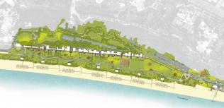 盡管交通堵塞嚴重,地中海大道對城市而言是一片重要的娛樂區(qū)。經此城市修復項目,從奧爾比亞到金牛灣的路徑變?yōu)橐粭l狹窄的雙車道路,停車場也經過了重新組織。