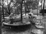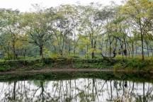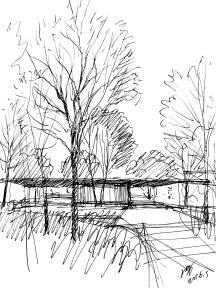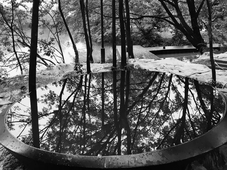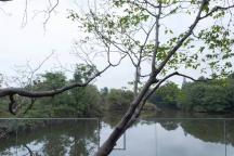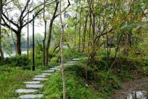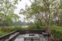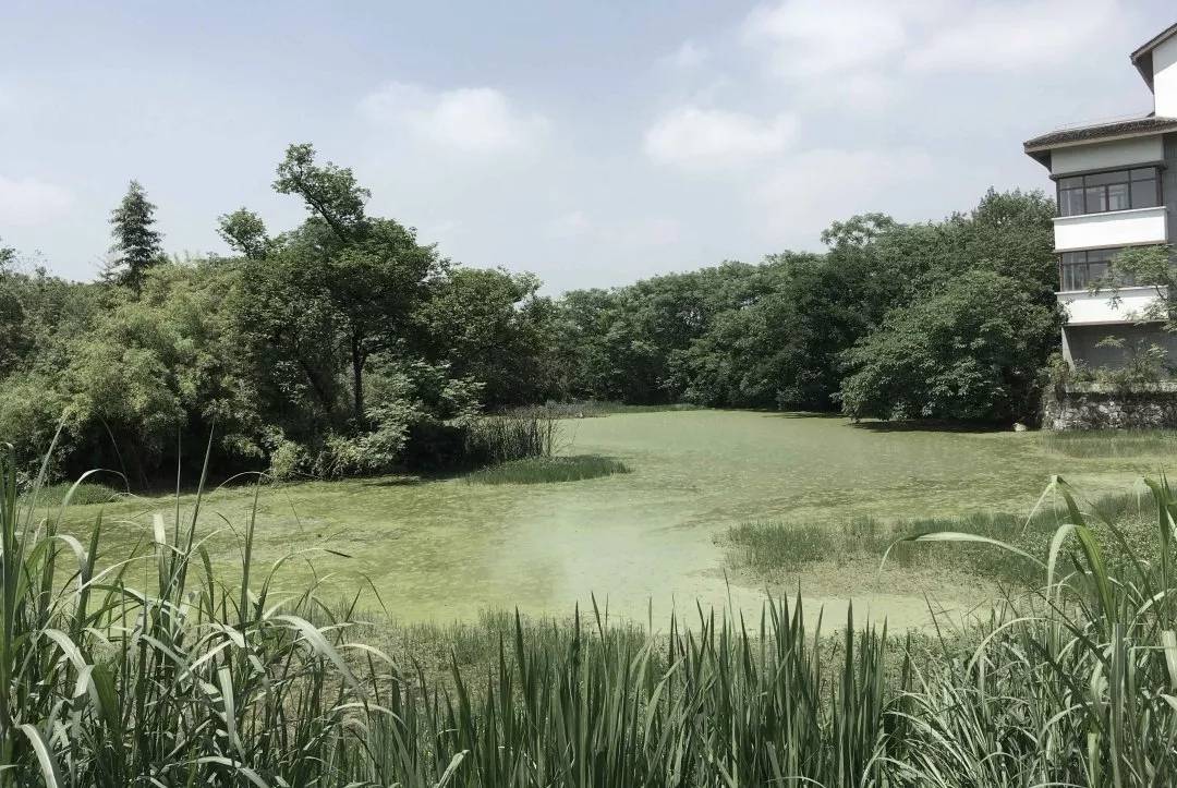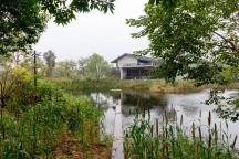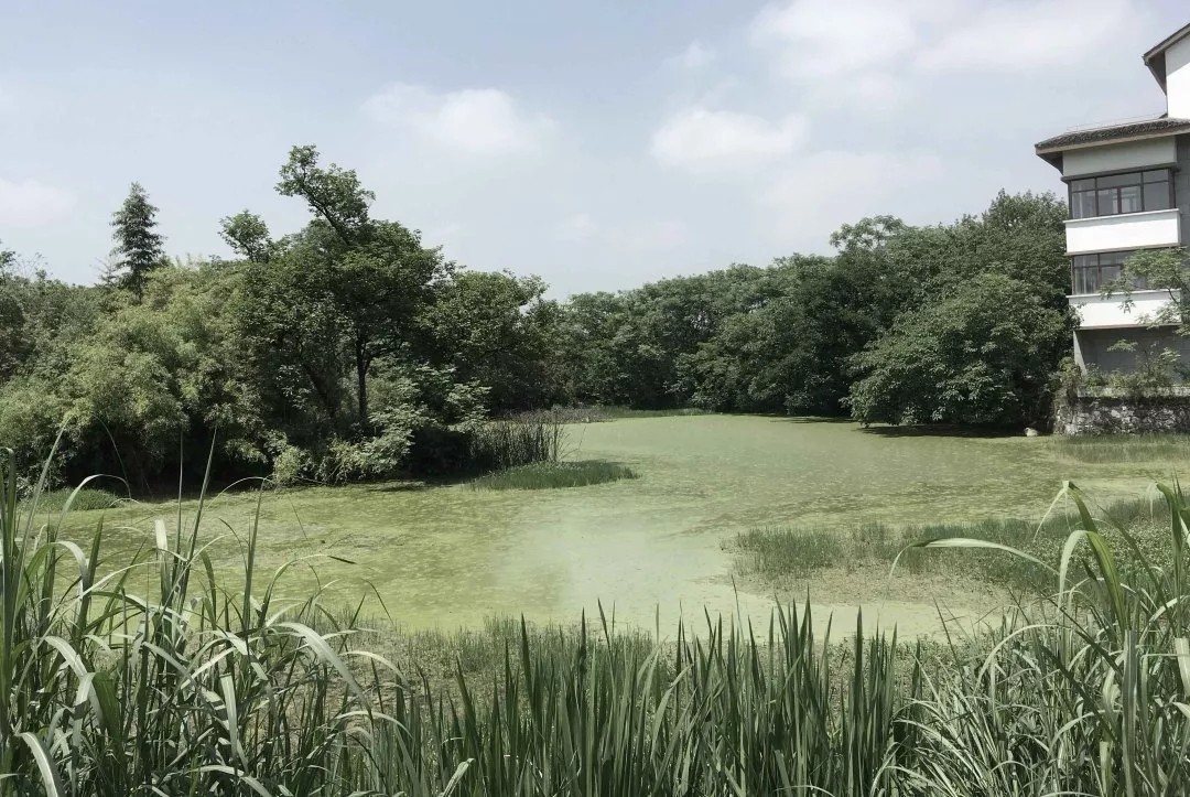 出了這個序列,是一個原生的水塘。水面常常積滿浮萍與綠藻。其實西溪所謂的濕地,并非西方人定義的原生的wetland,而是廢棄的魚塘、稻田等農(nóng)業(yè)景觀的殘留。此為后話。塘端頭的壩將下一個水塘遞進一層,原生有一顆巨大老桃花點綴在壩口,春天時極為燦爛。我們因此錯誤會意了這里的水土,試圖在壩的兩旁添置些桃花,未果?,F(xiàn)在雜草叢生,似乎也是一道景觀。