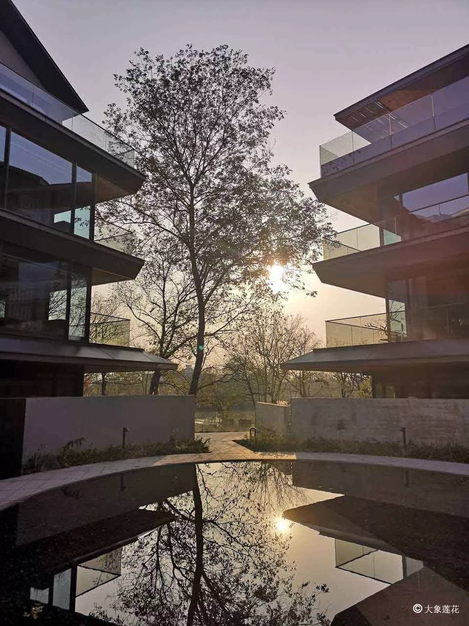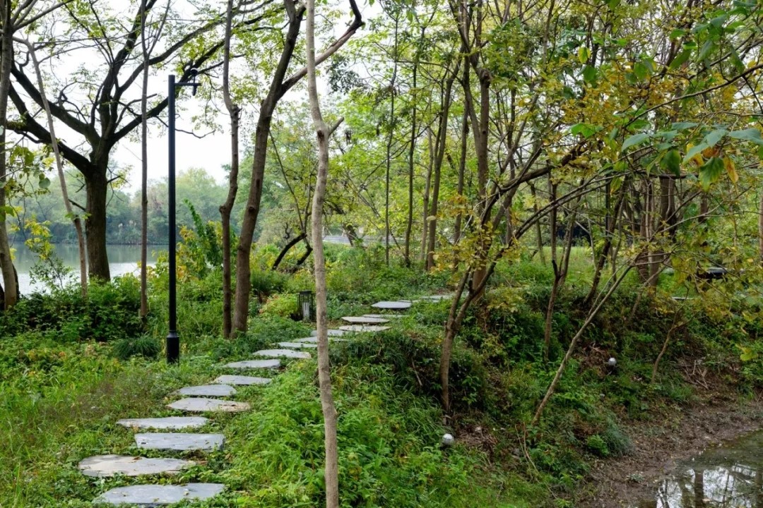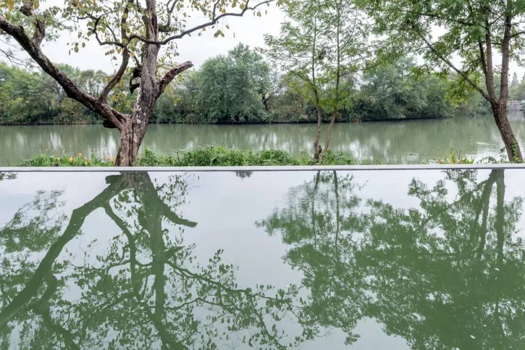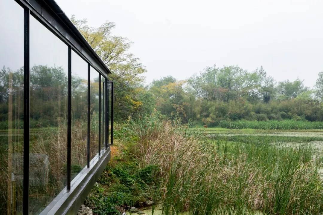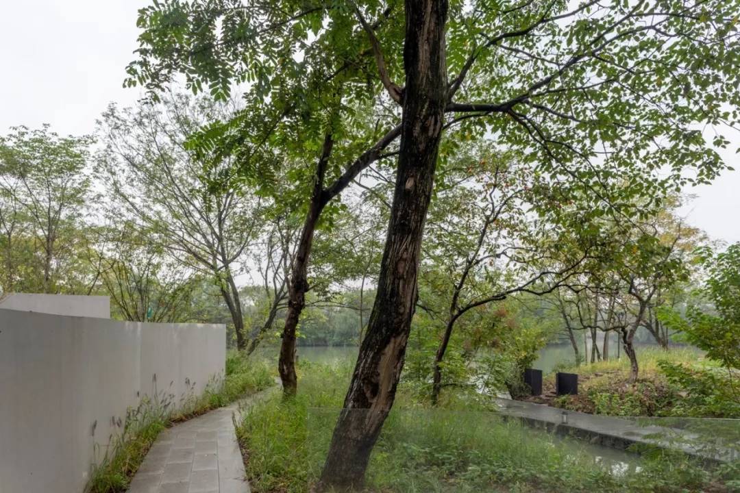 西溪是基于濕地的景觀。相比西湖,植被很矮——大部分是灌木蘆葦,樹也是長不高的品種;景致不開闊——人視點都被植物擋住了,只有某些水域狹長的地方視線會被引導(dǎo);如果說西湖是地平線引導(dǎo)的景觀,西溪則是被框住的景觀;房樹比例不常見,特別是當房子還有三四層的時候——人們通常不在濕地里建房子——當天際線是建筑而不是樹冠的時候,人對環(huán)境的感受是不同的:你不再被無限的自然籠罩和包圍,每一抬頭都是不被穿透的、無助于想象的硬質(zhì)空間。