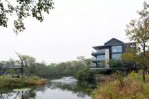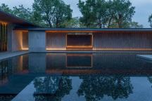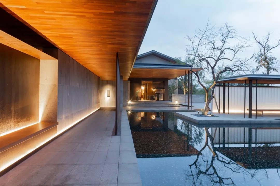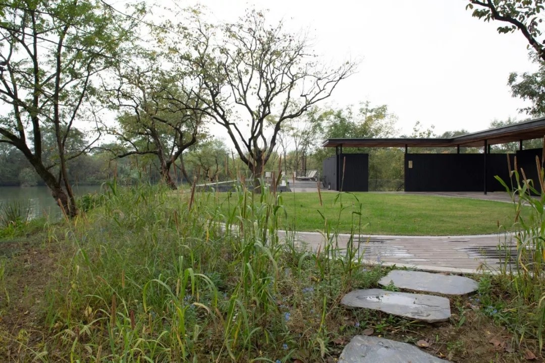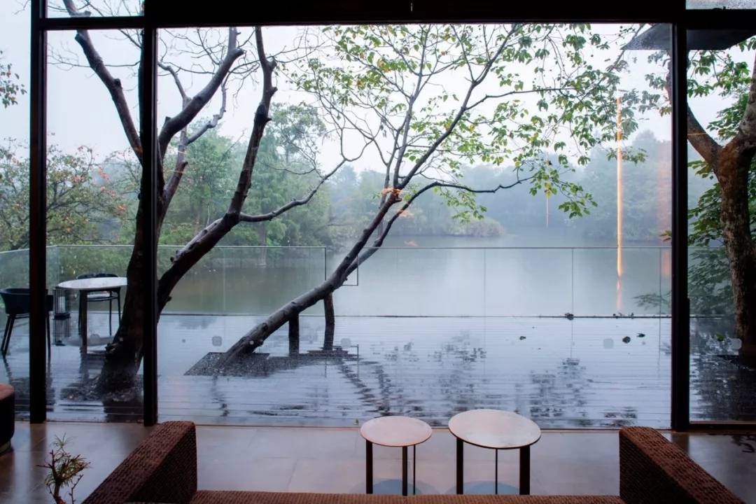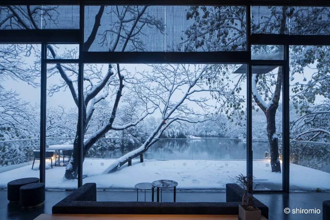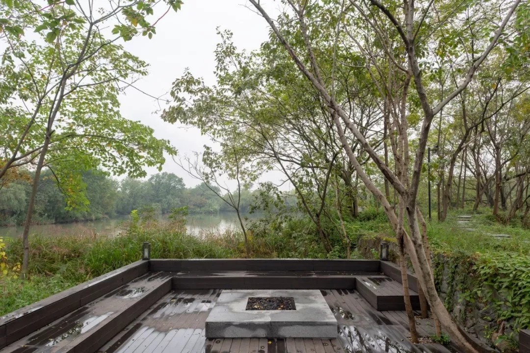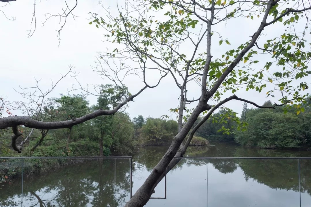木守西溪還有很多功能空間限于篇幅不能一一道來,比如會客廳外的宴客木平臺,半島上的泳池與婚禮草坪,客房群中間夾著的戶外茶座,底層客房的小庭院......所謂日光夜色,夏九雪封,各是風(fēng)景。我們還相信隨著時間的推移,自然的力量會把人工的棱角打磨粗糙,現(xiàn)代社會的審美最終會與農(nóng)耕時期的荒蠻交織和諧。
