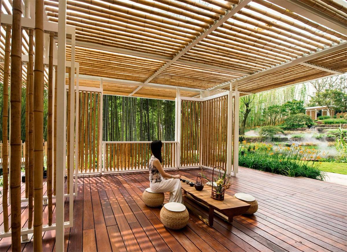 通透的建筑形式使建筑如同竹林中的賢士,有幽幽花香,啾啾鳥鳴相伴,可沐溫潤之湯泉,可觀萬千之氣象,讓人們無不感受到它們那種低調(diào)內(nèi)斂的悠然氣質(zhì)。