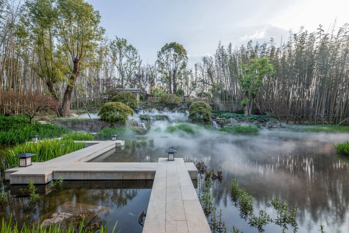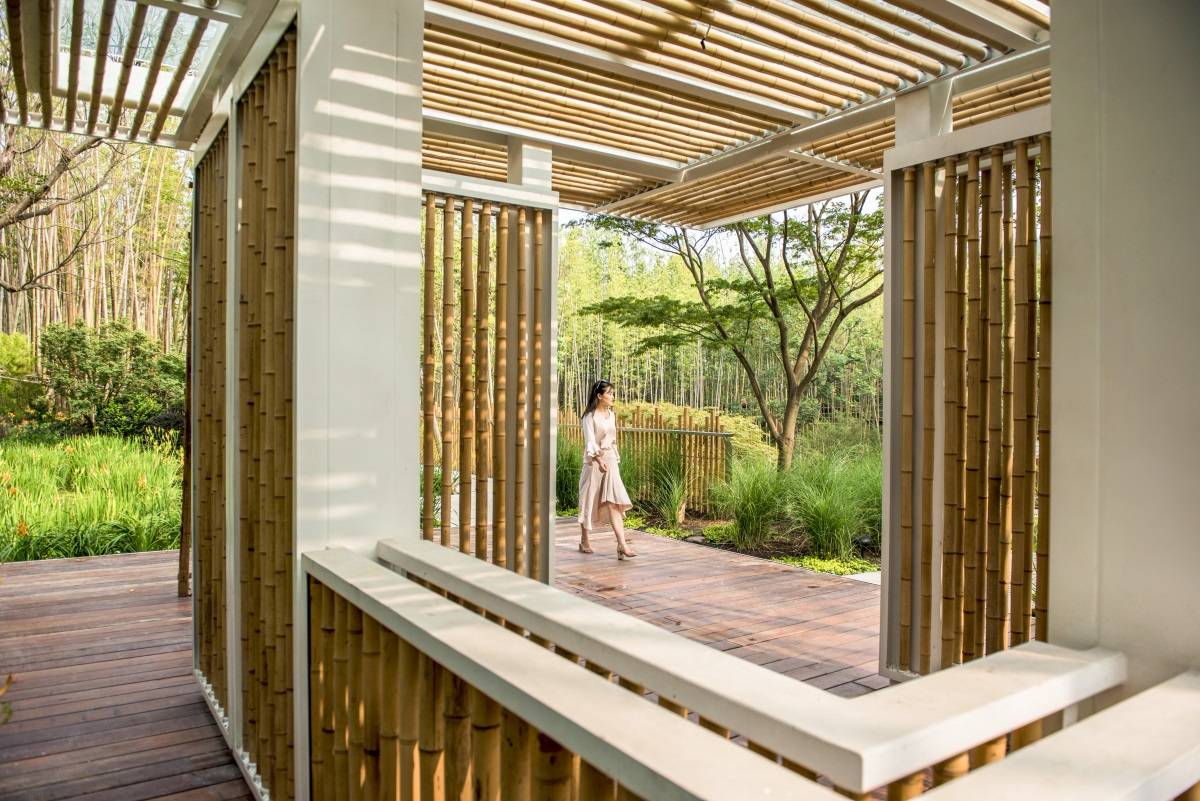 Δ 蜿蜒于竹林的小徑與溪水之上的折橋,在疏密有致的空間變化中產(chǎn)生節(jié)奏感,于城市的繁華與歸隱的閑適之間,找到平衡點(diǎn)