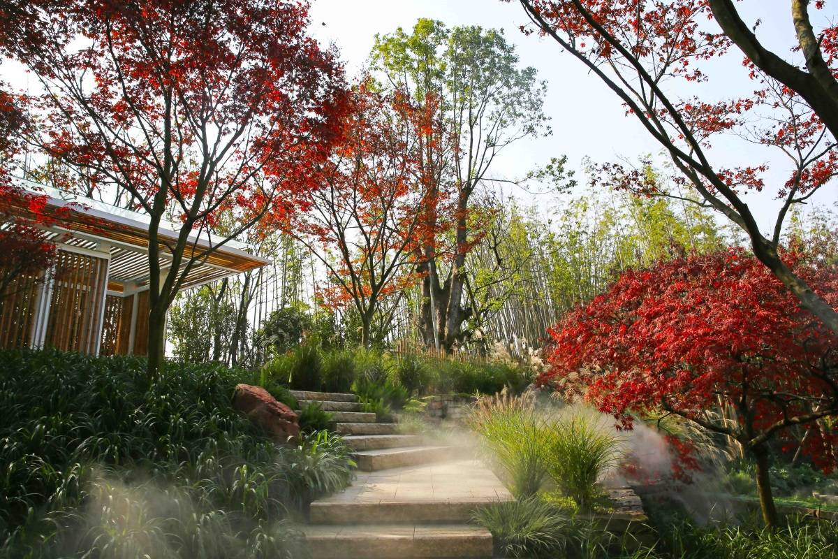 Δ 禪意的竹舍旁幾株紅楓點(diǎn)綴在綠竹之間,使竹隱園四季之景皆有不同