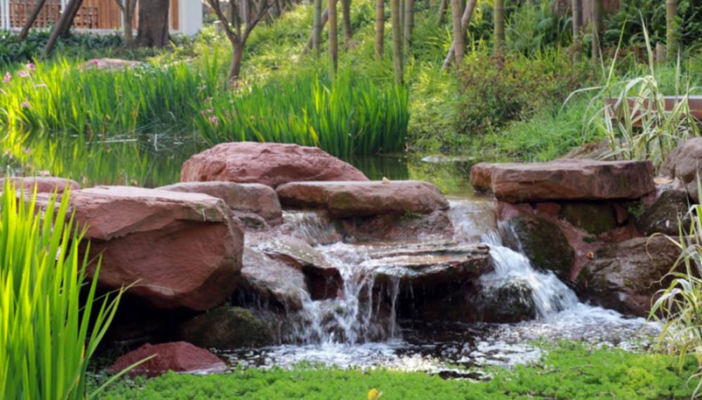 現(xiàn)場(chǎng)勘探過程中,在地下挖出很多大塊的、形態(tài)飽滿的紅砂巖整石。紅砂巖是距今約2億5000萬年前形成的紅色地層,具有非常重要的地質(zhì)特征,設(shè)計(jì)團(tuán)隊(duì)將其作為最重要的設(shè)計(jì)元素,以戶外家具、景觀小品、鋪地、疊泉、擋墻等不同的方式呈現(xiàn),營造出多樣化的功能與空間,為整個(gè)場(chǎng)地帶來了遠(yuǎn)古歷史的厚重感,也能讓每位到訪者對(duì)場(chǎng)地留下特殊記憶。
