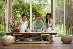 茶亭在設(shè)計(jì)上,選擇東側(cè)開窗,成為框景,可看見竹林與過亭。設(shè)計(jì)團(tuán)隊(duì)比起建筑形式,更加注重空間的氛圍。北側(cè)將隔扇設(shè)置成轉(zhuǎn)門,打開可看見后面的竹林間的小溪,關(guān)閉則自成一方天地,帶來了動(dòng)態(tài)的空間感受。