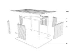 茶亭在選材上選用金屬和竹結(jié)合的形式,金屬為骨架,竹竿為皮膚,金屬選用白色噴漆,與竹竿的黃色形成鮮明對(duì)比。