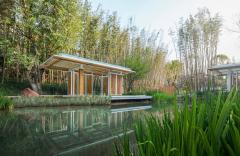 Δ 茶亭臨于水上,與大片青翠的竹林融為一體,設(shè)計(jì)不是為了支配自然,而是為了與自然共生