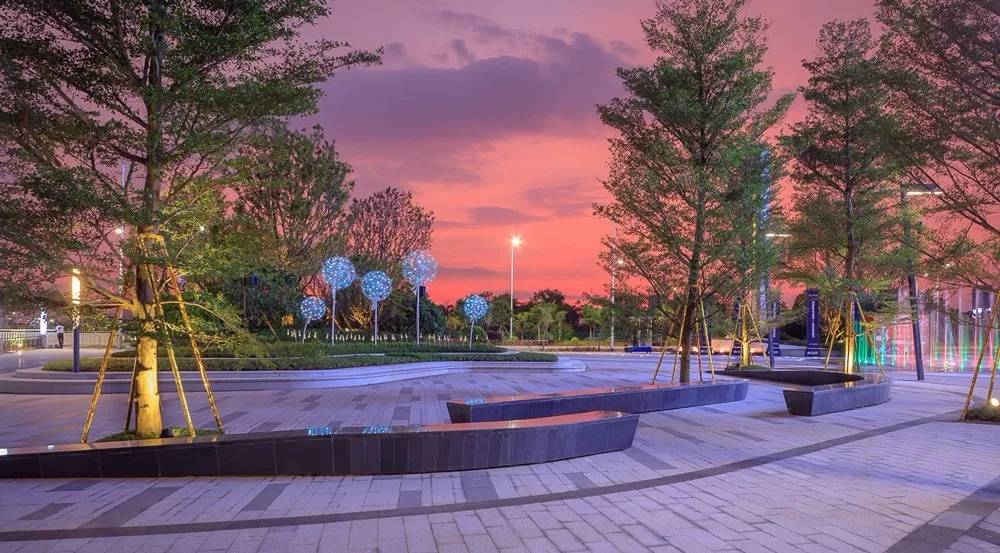 璀璨的燈光和星光般的穿孔板樹池,點亮陽江夜景