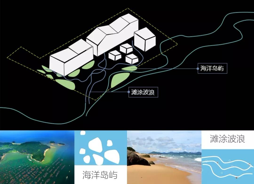 方案以陽江印象為出發(fā)點,從陽江周邊分部的島嶼與灘涂中提取設計元素,將地理地貌特征影射為景觀的設計語言和功能設施。