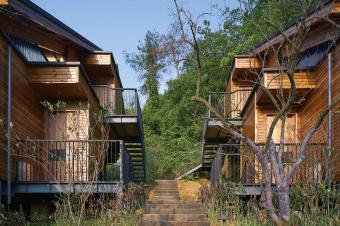 酒店客房約200余間/套,分散于山間水濱。以特色小屋、度假式別墅排屋為主,輔以少量的特色船屋、樹屋,這些客房以各種變換的姿態(tài)棲居于青山綠水中。清晨,居住于此的游客在鳥鳴中晨醒,讓身心在清幽寧靜的隱世樂土之中開啟美好的一天。當(dāng)季的新鮮有機食材經(jīng)由精心的烹飪制作供給游客在輕松愜意的用餐環(huán)境中盡享自然美味的慢食樂趣。建德富春開元芳草地鄉(xiāng)村酒店追求更高層次的發(fā)展內(nèi)容,通過對于環(huán)境的精心細致打造,使客人的身心融入自然,實現(xiàn)在自然中的自我喚醒,有效地使得來此的游客消除疲憊、獲得輕松和愉悅。從而,該酒店得以融入全球健康產(chǎn)業(yè),實現(xiàn)服務(wù)功能的升級。
