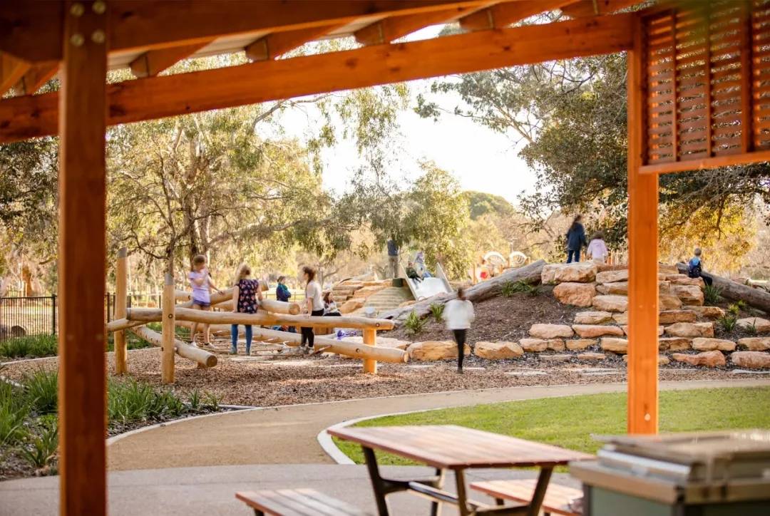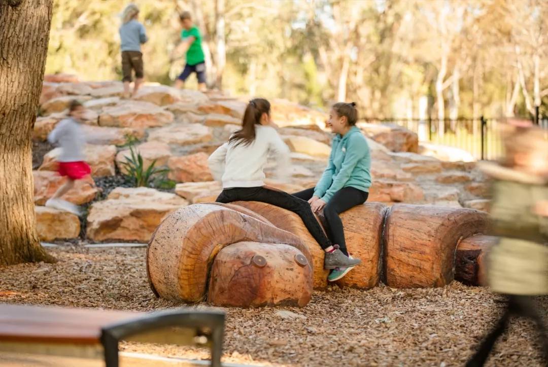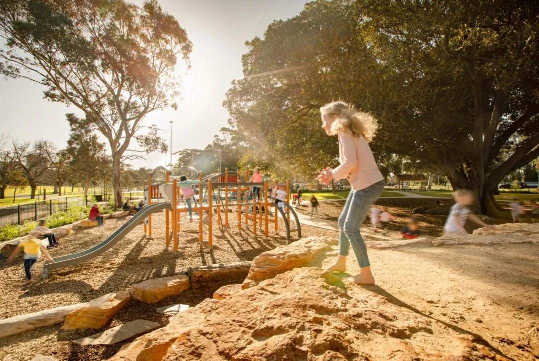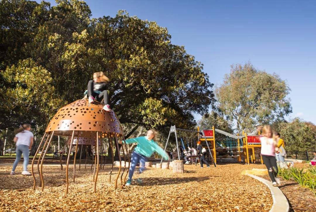我們設(shè)計是加強運用當?shù)噩F(xiàn)有的自然資源,例如突顯出位于兒童游樂場中心的成熟摩頓灣無花果樹(大葉榕)。目標便是運用高品質(zhì)的設(shè)施和本地植被,去打造多樣的娛樂和增加游樂空間的機會,從而創(chuàng)建一個模范社區(qū)公園,讓孩子們可以盡情享受體驗這靈動的空間,同時能展示澳大利亞當?shù)氐膲延^美景及多樣性資源,滿足人們的舒適愜意生活方式。