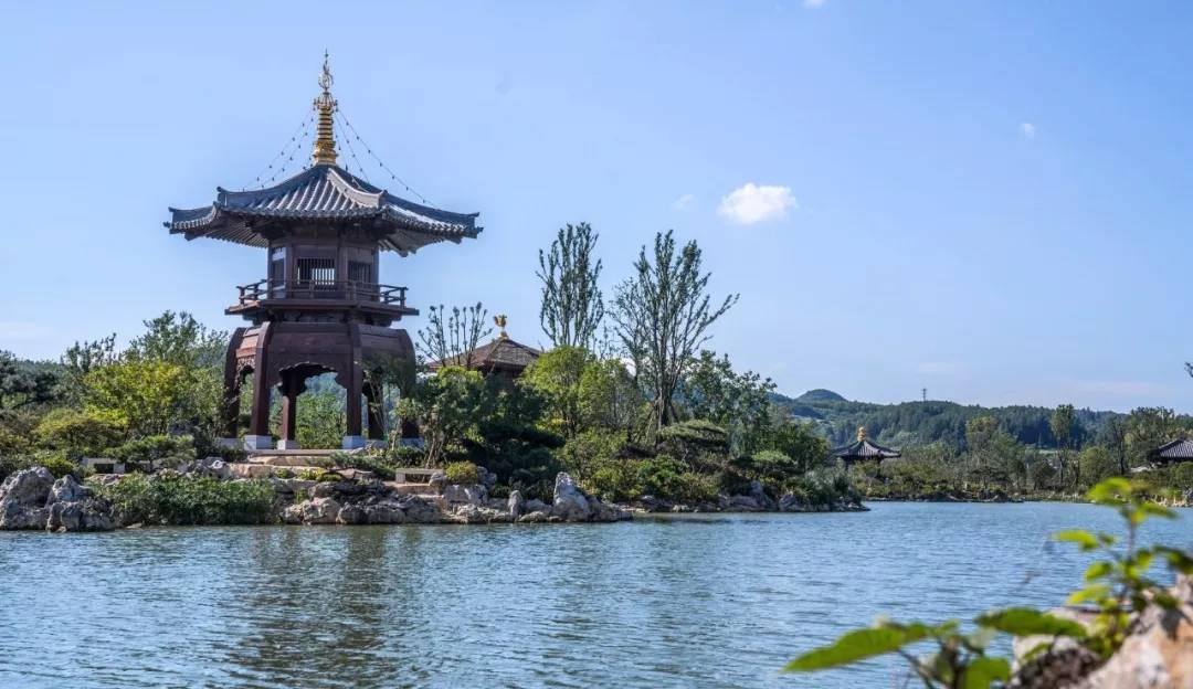 十二花神島 觀景臺(tái)視線廣闊,可遠(yuǎn)眺湖面十二花神島。在觀景臺(tái)到花神島之間,以古典造園手法布置院落,游人前往花神島,不覺(jué)進(jìn)入一種落英繽紛之仙境。