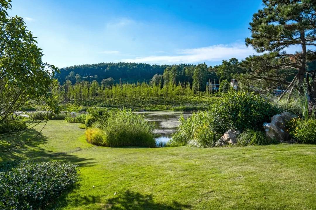 百櫻園 仿中國(guó)古典設(shè)計(jì),正中為觀景亭廊,亭廊之后為一處空地,其余部分為櫻花林。漫步百櫻園,可感受春光明媚,白櫻爭(zhēng)艷。在自然景觀中,又能感受到古典雅致的人文氣息。