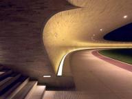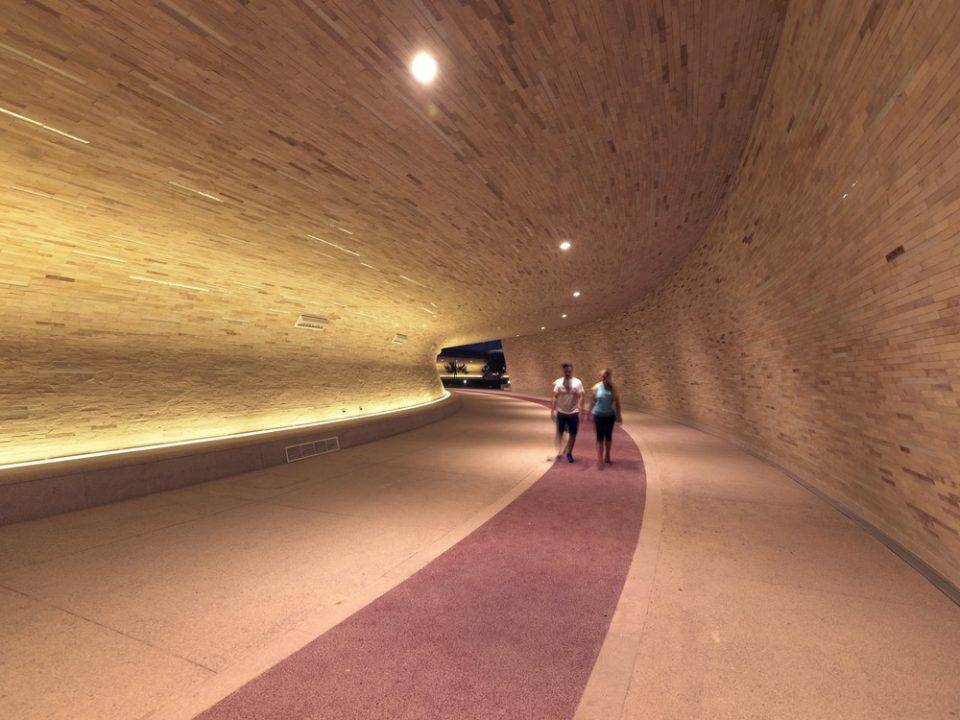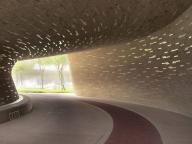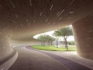 氧氣公園以風(fēng)化的石頭和流動的沙漠地質(zhì)為設(shè)計(jì)元素,人行道路嵌入蜿蜒的地形中,打造了一些列環(huán)形曲折的底上及地下通行區(qū)域。夜晚的燈光配合流動的水系,讓公園更加迷人。