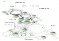 搭配的服務(wù)型設(shè)施也為日夜體育活動提供了理想的環(huán)境。此外公園為來訪者提供環(huán)形跑道,地下體育運(yùn)動場所,騎術(shù)區(qū)以及各種適宜的運(yùn)動場所。熱氣球燈于地下廣場冉冉升起,成為遠(yuǎn)眺氧氣公園的標(biāo)志性元素。氧氣公園是該社區(qū)的人造綠化系統(tǒng),它將人們從戶內(nèi)運(yùn)動環(huán)境中解救出來,在怡人的大自然中感受健康的生活方式。