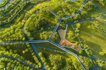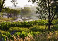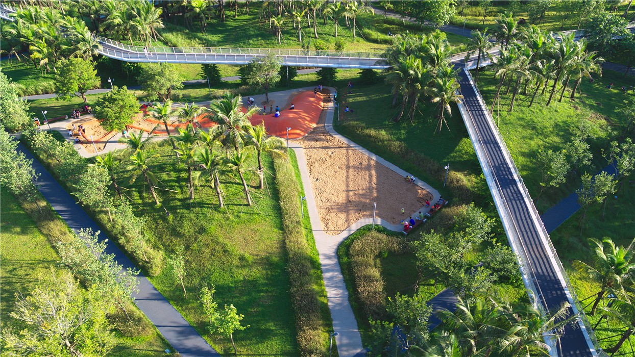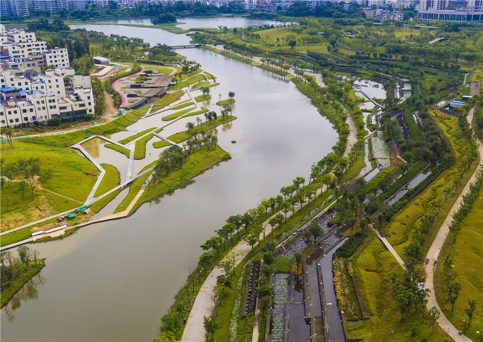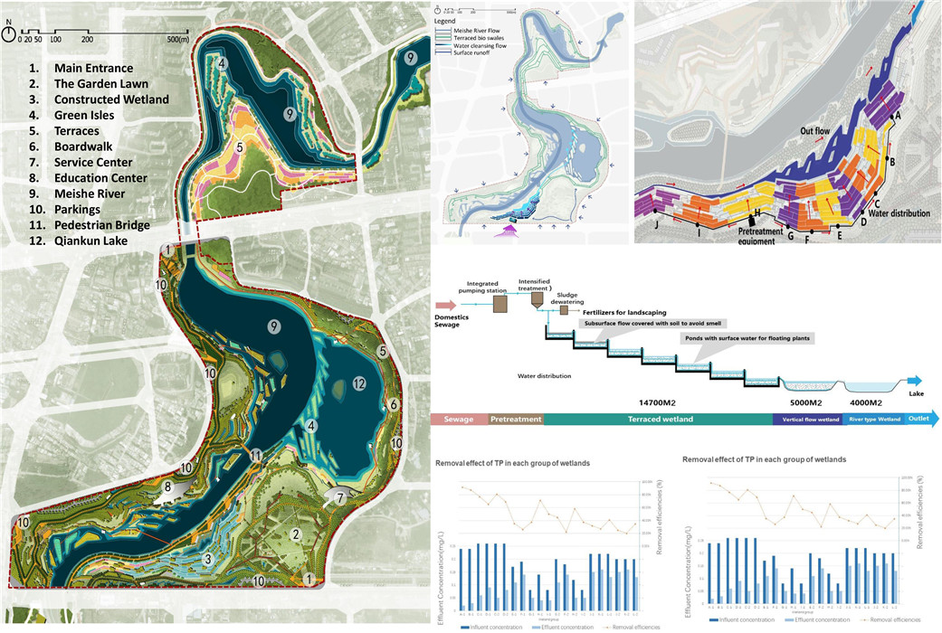 本場地位于美舍河中游,是美舍河最重要最大的景觀節(jié)點(diǎn),是美舍河海綿城市展示的窗口,場地設(shè)計(jì)面積為78.52公頃(包含水域面積)。設(shè)計(jì)上,運(yùn)用臺(tái)田、密林、果園、濕地島鏈等大地景觀的手法展示鳳翔公園自然之美;生態(tài)上,通過人工潛流、表流濕地最大限度解決水質(zhì)污染問題的同時(shí),以乾坤湖為核心營造白鷺生境;城市休閑方面,充分考慮城市綜合公園的需求,提供滿足市民休閑的活動(dòng)場地及慢行步道。最終將鳳翔公園打造成展示海綿理念、滿足市民休閑需求、展示??诰坝^特色的綜合性生態(tài)城市濕地公園。