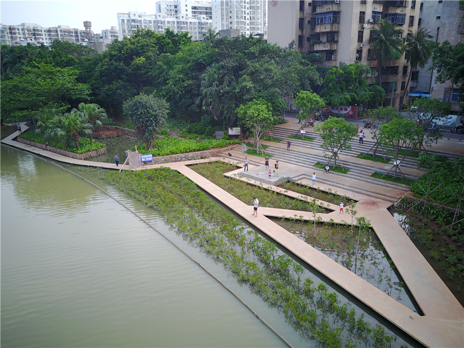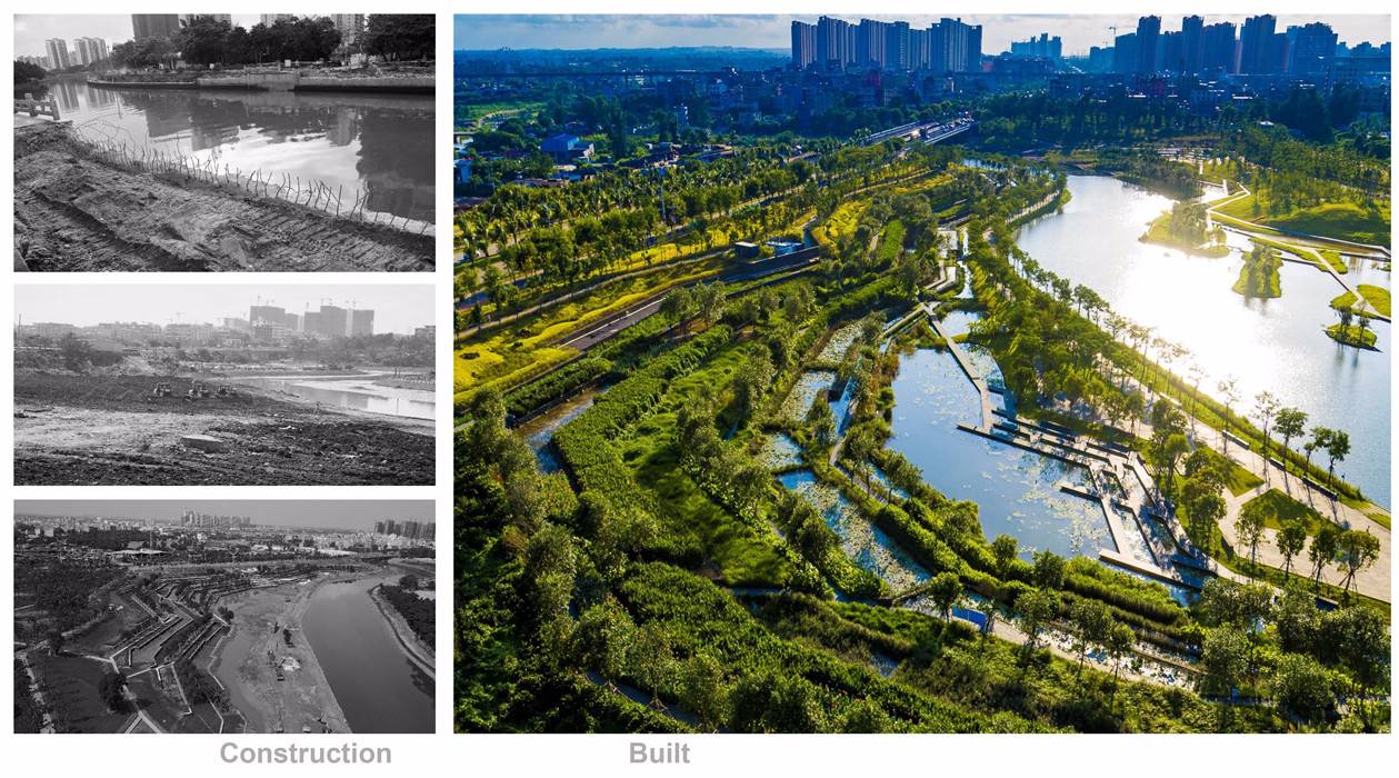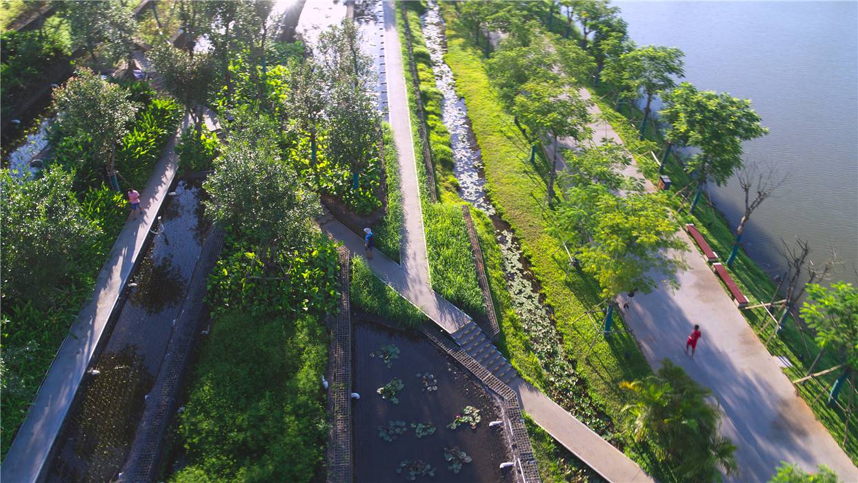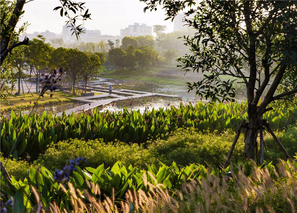 通過這些景觀設(shè)計(jì)策略,原先持續(xù)惡化的河道和親水性極差的城市邊緣地帶,已成功改造成一個(gè)集雨水凈化、生境營造、滿足市民休閑功能于一體的海綿公園 。