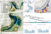 可多層次體驗(yàn)的濕地公園:場地在設(shè)計(jì)前基本無法進(jìn)入,以荒地、菜地為主,設(shè)計(jì)中設(shè)置三個(gè)一級(jí)功能節(jié)點(diǎn)、15個(gè)二級(jí)功能節(jié)點(diǎn)來滿足市民休閑的需求,其中有三個(gè)功能節(jié)點(diǎn),分別為科普教育濕地、市民演繹舞臺(tái)、綜合活動(dòng)場地,其中建筑的初步選址靠近主入口區(qū)的綜合市民活動(dòng)場地,同時(shí)通過選取當(dāng)?shù)刂参餇I造密林、臺(tái)地、濕地、島嶼的河道生境來展示鳳翔公園的大地景觀之美,再在此基礎(chǔ)上構(gòu)建精致而具細(xì)節(jié)的景觀構(gòu)筑物設(shè)施,提神公園整體形象。多層次的親水體驗(yàn)設(shè)計(jì),使游步道系統(tǒng)能夠應(yīng)對(duì)不同雨洪條件下人的親水需求。