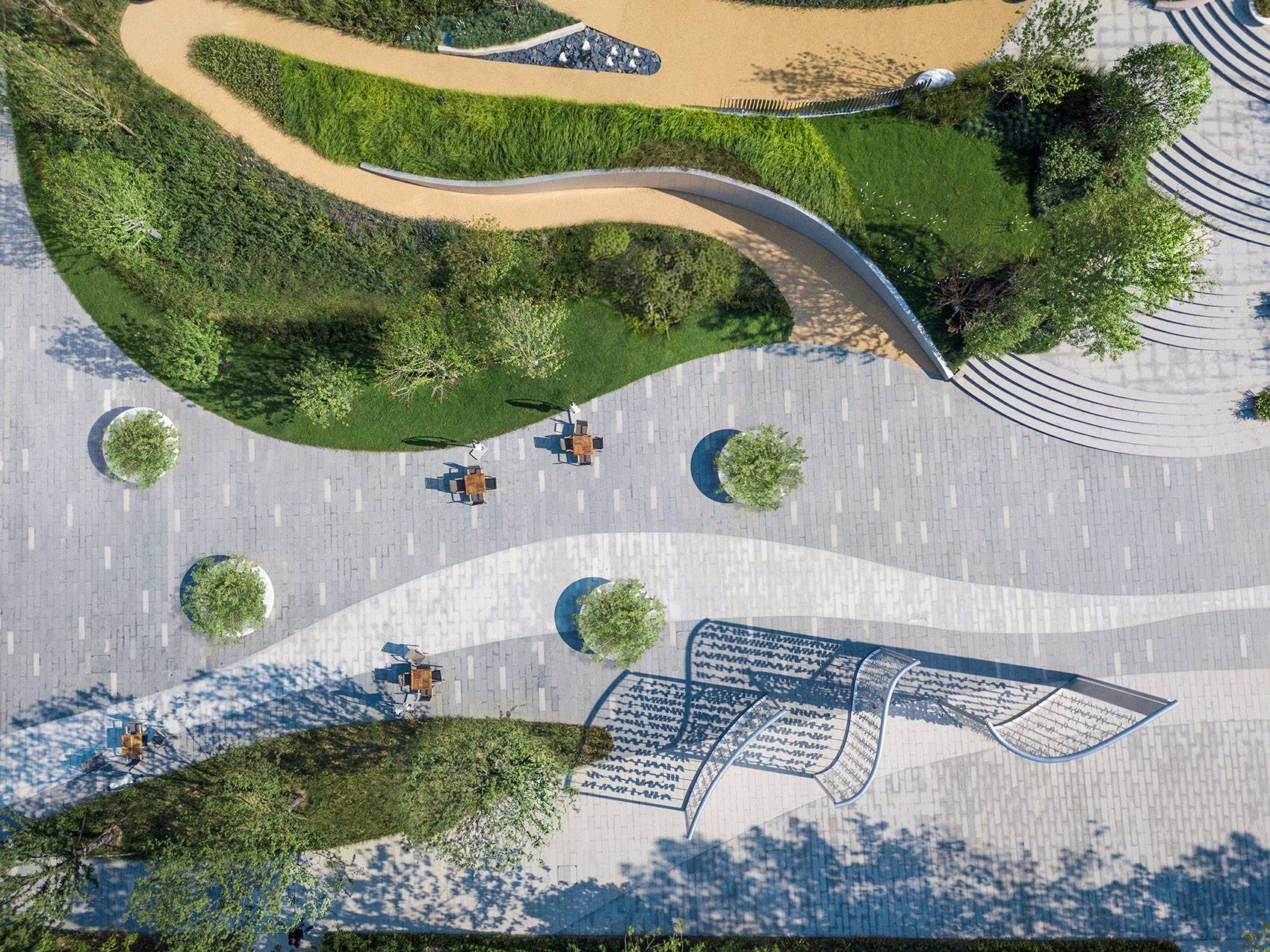 ▼水中汀步通過結(jié)構(gòu)和邊緣細(xì)節(jié)設(shè)計(jì),形成漂浮于水面的效果