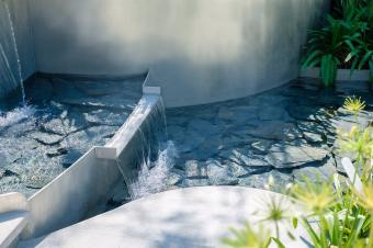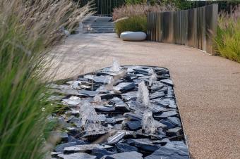 ▼深灰色板巖噴泉,成為微風(fēng)花園空間轉(zhuǎn)換處的視覺焦點(diǎn)