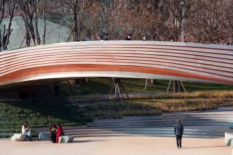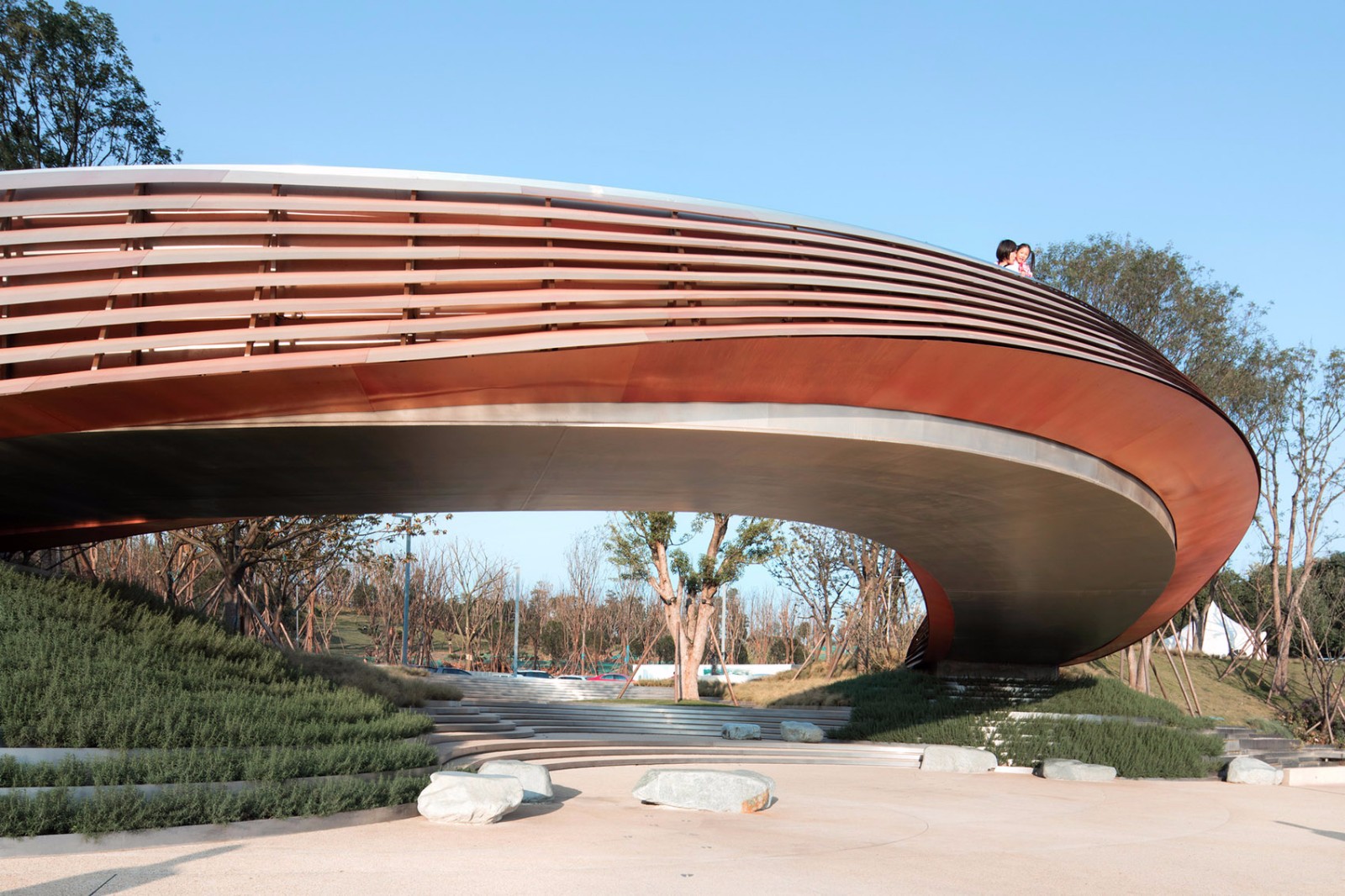 ▼景觀橋作為藝術(shù)雕塑,成為此處的標(biāo)志性場景