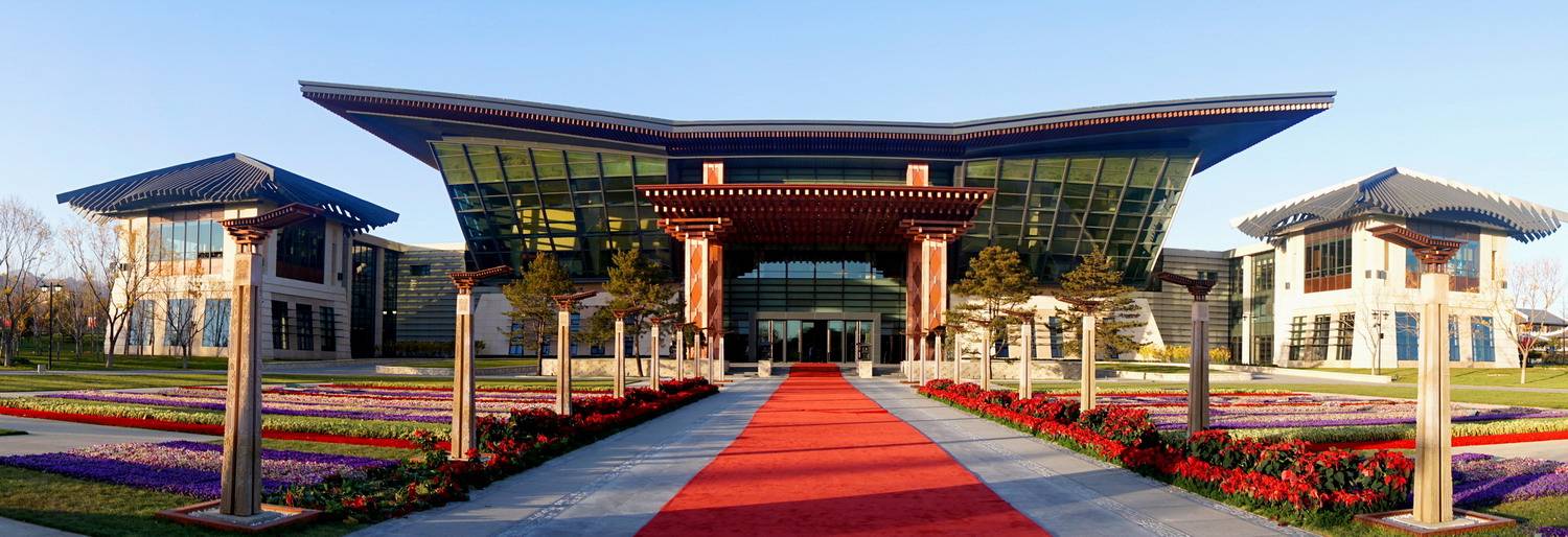 雁棲島整個項目從規(guī)劃到竣工歷時三年多。島上建筑和景觀整體風(fēng)格凸顯了中國的漢唐文化。荷蘭NITA(尼塔)的整個景觀提升設(shè)計方案充分考慮了主體建筑的唐風(fēng)漢韻,結(jié)合了富有中國特色的漢闕燈柱、灰瓦紅柱、古樸門樓,營造了作為國家級的展會景觀需要營造的氛圍,提出了生態(tài)環(huán)境國際化、多彩化、可持續(xù)的設(shè)計策略。國際會議中心主廣場帶狀簡潔的花田圖案成為整個設(shè)計中的亮點,既烘托了國際性盛會的氣氛,又營造了生態(tài)、多彩的會議環(huán)境。用荷蘭花田景觀,結(jié)合中國風(fēng)的設(shè)計語言,完美演繹了2014年APEC“攜手共圓亞太夢”的會議主題。此次設(shè)計摒棄了雜色花卉相間的搭配形式,采用純色花卉呈帶狀有序搭配,不僅層次豐富、整潔大氣,而且非常適合現(xiàn)場狹長空地的形式,突出了空間序列的引導(dǎo)性和會議規(guī)格的高端性。