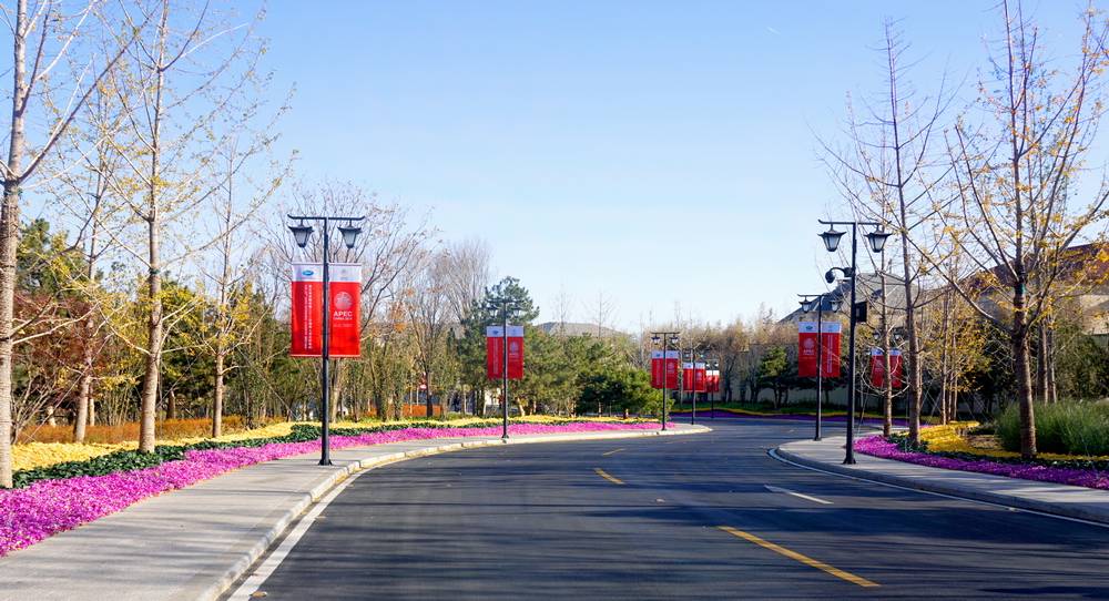 這是一個裝飾占首位的設(shè)計項目。根據(jù)NITA(尼塔)的“綠色城市”理念,這樣的項目就像開一次big family party一樣,既要有party的氣氛,也要在party結(jié)束,去掉這些裝飾以后,還能恢復(fù)之前寧靜淡雅的家的感覺。經(jīng)過前期現(xiàn)場踏勘,NITA(尼塔)對基地現(xiàn)狀景觀的優(yōu)劣勢作了深刻分析?,F(xiàn)狀喬木品種豐富、草坪長勢良好,但現(xiàn)狀植物缺少色彩、組團和層次,而且現(xiàn)有的時令花卉顏色過于凌亂,種植方式過于簡單和傳統(tǒng)。面臨時間緊迫、當(dāng)季可用植物較少及植物移栽成活率低等諸多挑戰(zhàn),NITA(尼塔)提出了切實、可行的設(shè)計策略。通過增加花卉造型和種類,豐富植物層次,疏密結(jié)合形成組團,加強中式園林意境,并在重要節(jié)點區(qū)域以花卉烘托會議氣氛,增加景觀色彩,打造生態(tài)可持續(xù)的景觀環(huán)境。各種常綠喬木、落葉喬木、灌木、時令花卉、觀賞草等植物從去年10月起已陸續(xù)在島上“安家”,示范區(qū)內(nèi)喬灌木和花草種類就達(dá)近200種,堪比一座大型植物園。創(chuàng)意、多彩花境的營造與會議選址、主體建筑設(shè)計及內(nèi)部裝修彰顯的生態(tài)環(huán)保理念達(dá)到了和諧統(tǒng)一,讓11月的北京也可以如此的春意盎然,五彩斑斕……