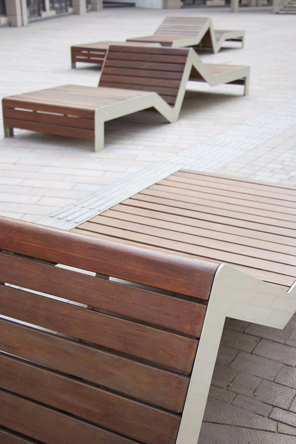 ▼“波浪”式的預(yù)制鋼木坐凳細(xì)節(jié)