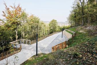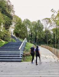 如何將克雷伊市中心連接至位于高原的瓦茲,同時穿越垂直高差達(dá)到40米的壯麗景觀?! 在克雷伊市政府的支持下,由Espace Libre率領(lǐng)的景觀規(guī)劃團(tuán)隊(duì)迎接了這一項(xiàng)目的挑戰(zhàn)。