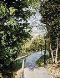 ▼鑲嵌在山間樹林的城市坡道