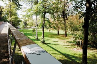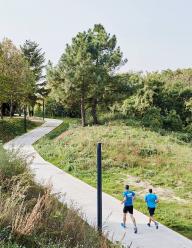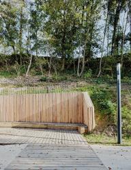 Espace Libre的創(chuàng)始人、景觀設(shè)計師Maxime Sa?sse表示:“該項(xiàng)目的關(guān)鍵是要在種滿樹木的山坡上構(gòu)建一條城市坡道,使其與市中心的一個孤立區(qū)域相連。一個原本可能平淡無奇的開發(fā)項(xiàng)目實(shí)際上成為了一個與景觀、生態(tài)系統(tǒng)和視野都密切相關(guān)的獨(dú)特項(xiàng)目。”
