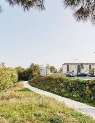 克雷伊位于巴黎北部,在戰(zhàn)后取得了迅速發(fā)展。密集的街區(qū)一直延伸到比市中心高出40米的山地區(qū)域,并且受到一座樹木繁茂的山丘的阻隔。這樣的空間現(xiàn)狀導(dǎo)致山上的居民只能通過一座巨大的階梯進(jìn)入城市中心。以更加柔和的方式連接住宅區(qū)與城市中心,打造無障礙的新路徑——設(shè)計團(tuán)隊(duì)以此為目標(biāo),對場地的生態(tài)環(huán)境、水文系統(tǒng)、本地植物物種、土壤的性質(zhì)以開發(fā)潛力進(jìn)行了深入研究,希望能夠最大程度地減少項(xiàng)目對于環(huán)境的影響。