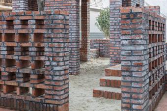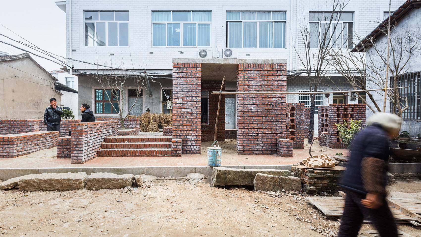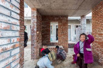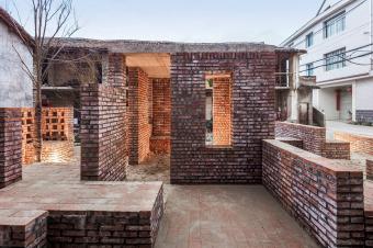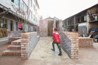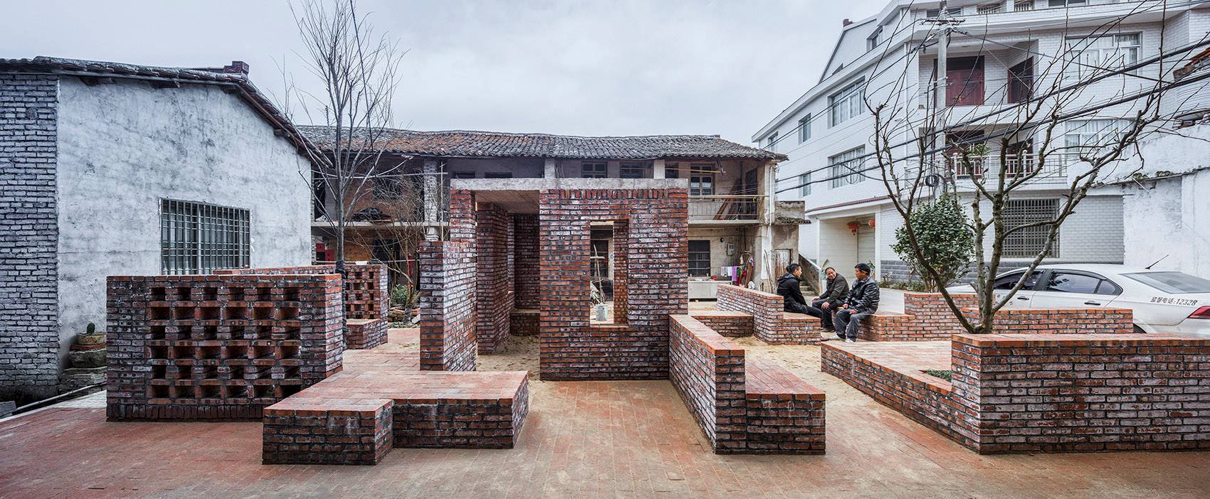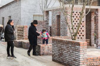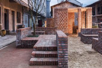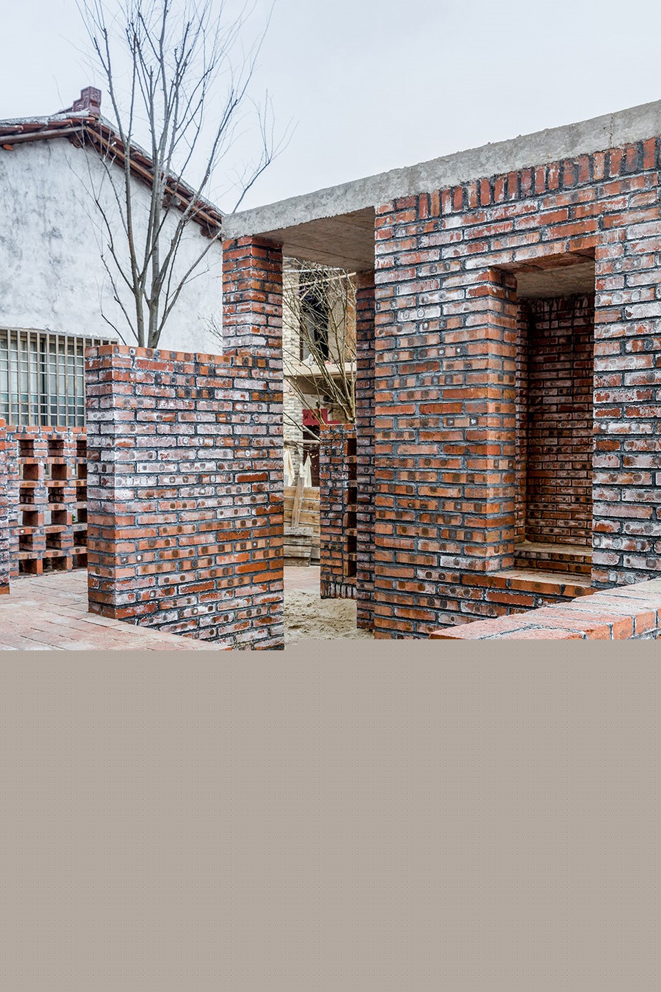 紅磚砌筑了一些供村民休息的座位、臺階、舞臺、片墻,還有一個半私密的磚盒,它們像是一種限制沙的邊界。