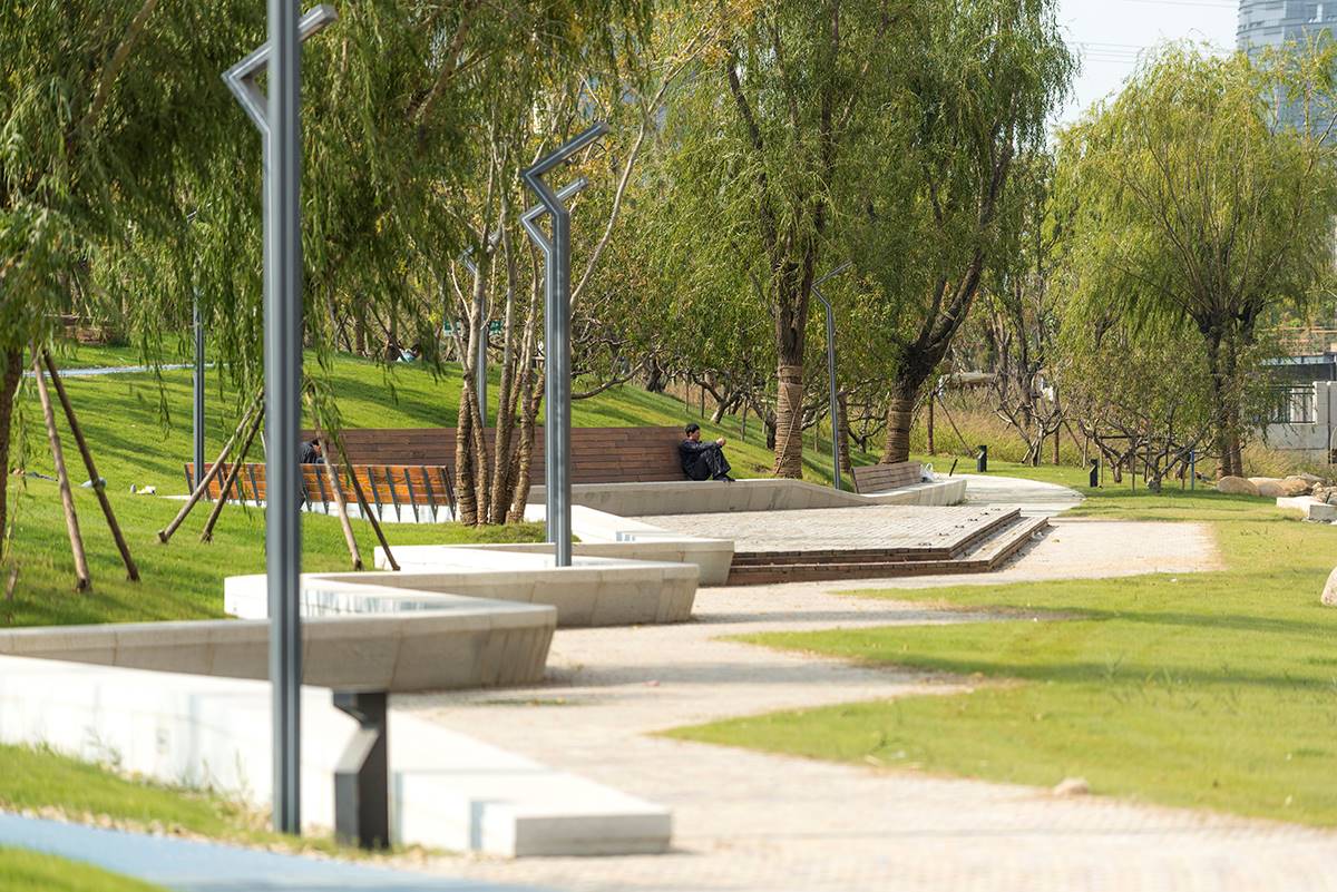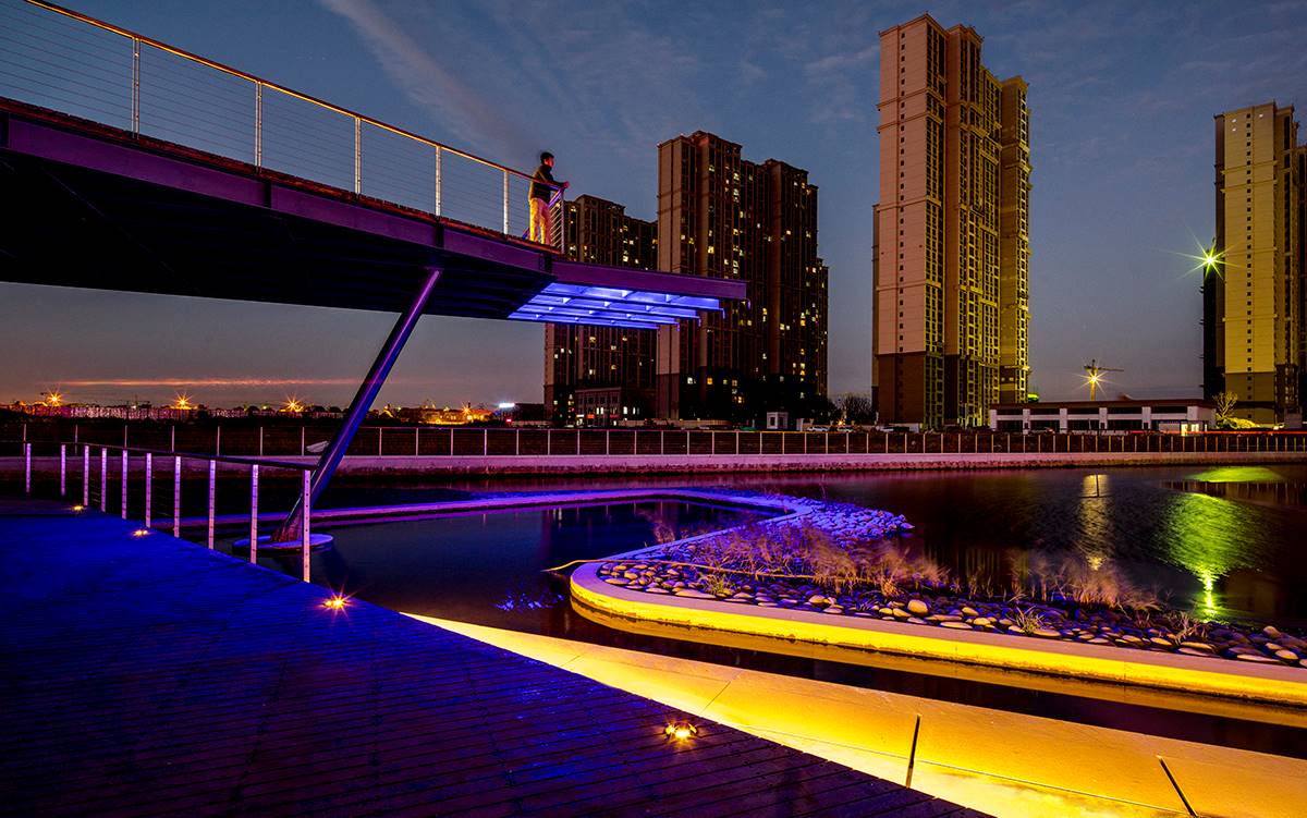 晴天或雪天、白日或黑夜,人們都可以從都市中來到生態(tài)綠廊可以放下沉重的思索、卸下身上的煩惱,安靜的望著映著盈盈綠草的河水,放空自我享受閑暇時光。